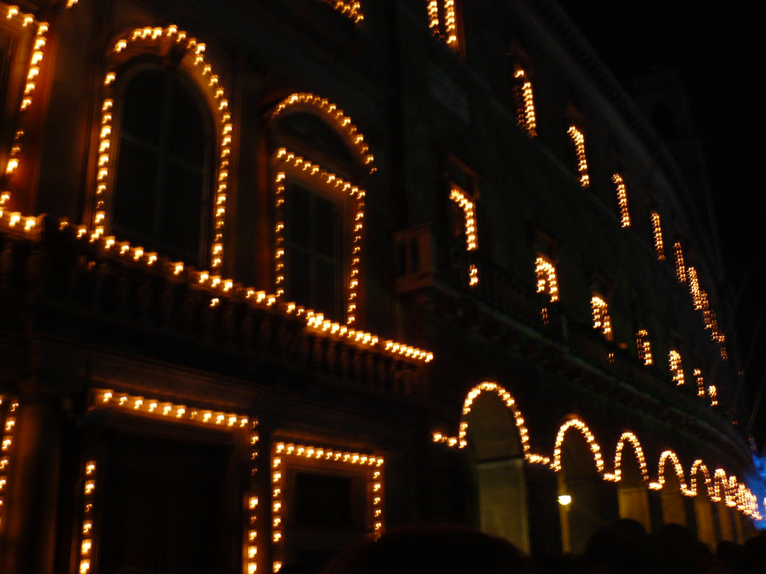 Nascido com o intuito de acender as janelas das casas, para a passagem de desfiles ou procissões, a Luminara, seguindo os desenhos espetaculares dos novos tempos, foi tomando forma no século XVIII, com arquitetura brilhante, de livre imaginação para aplicação em edifícios, que cada vez menos respeitavam as estruturas reais, inventando formas bizarras que transformaram a cidade e, especialmente, a margem do rio, em um cenário de fantasia efeito teatral. Em alguns edifícios, a iluminação, no entanto, continua a ter a função de destacar as estruturas existentes.