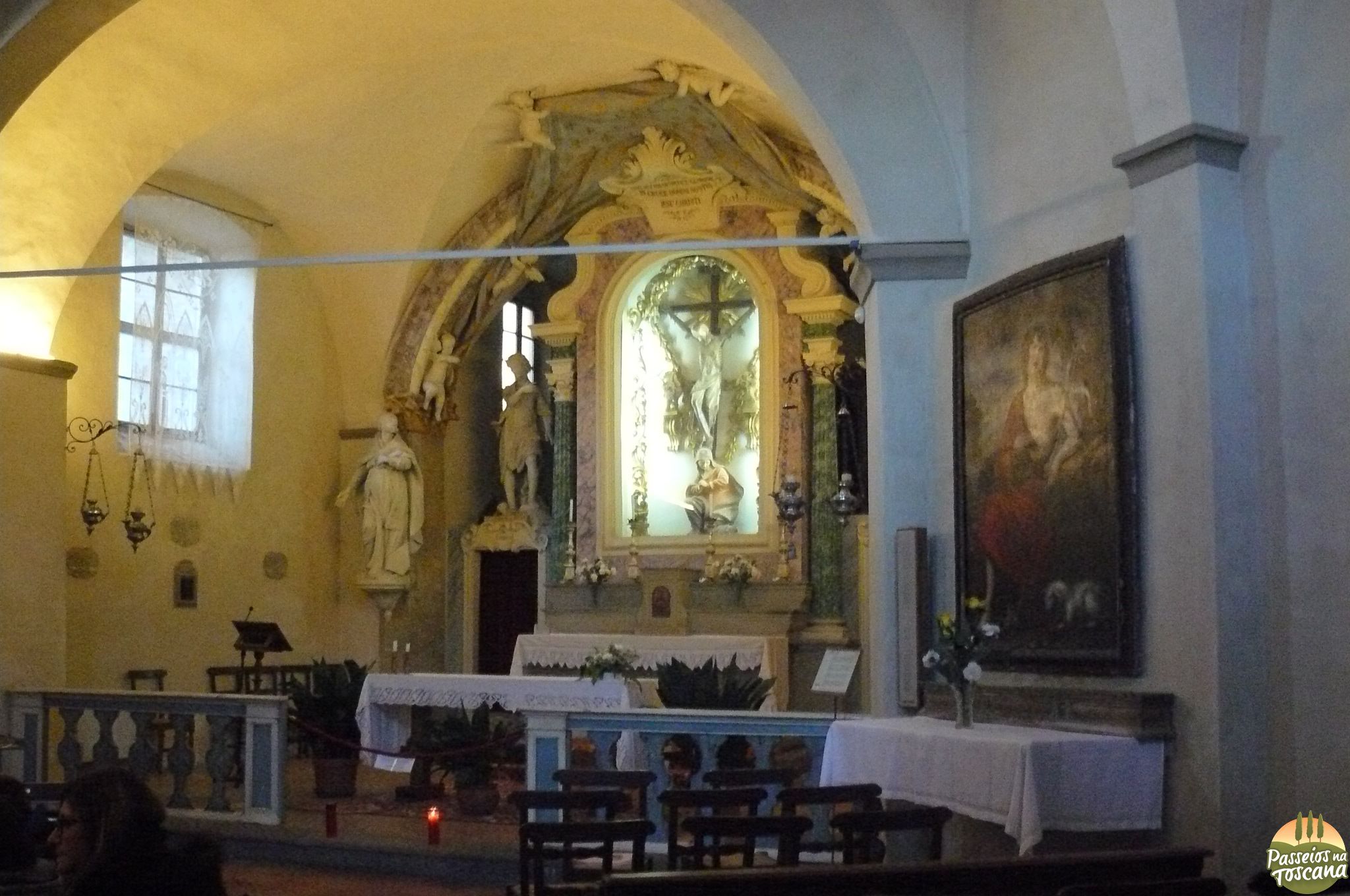 Sugiro que você comece a sua visita a Anghiari na Chiesa (igreja) di Santo Stefano, também chamada de Badia. Original do século VII, a igreja é em forma de uma cruz grega, e a concepção desta igreja primitiva influenciou o uso da arte bizantina em Ravenna, por exemplo, no “Mausoléu di Galla Placidia”.