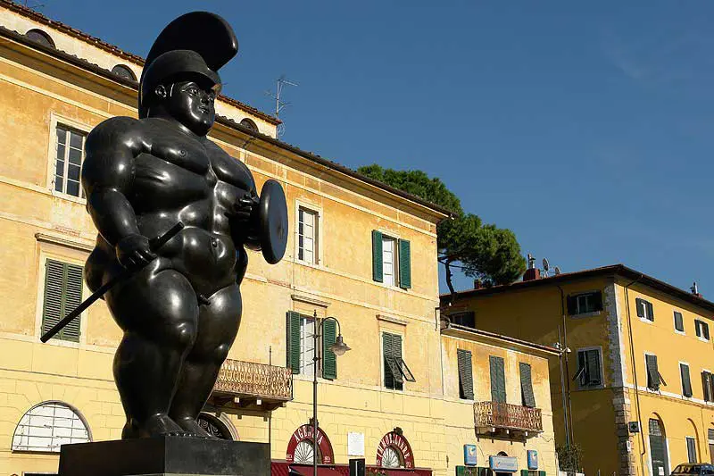 As numerosas doações do artista à cidade também atestam o vínculo de Botero com Pietrasanta. Basta citar “Il Guerriero” (foto acima) de Botero, uma estátua de bronze feita em 1992 com cerca de 4 metros de altura que domina a Piazza Matteotti.