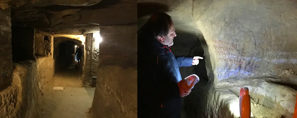 Foram descobertos novos túneis, uma cripta e muitas inscrições, e entre estas: