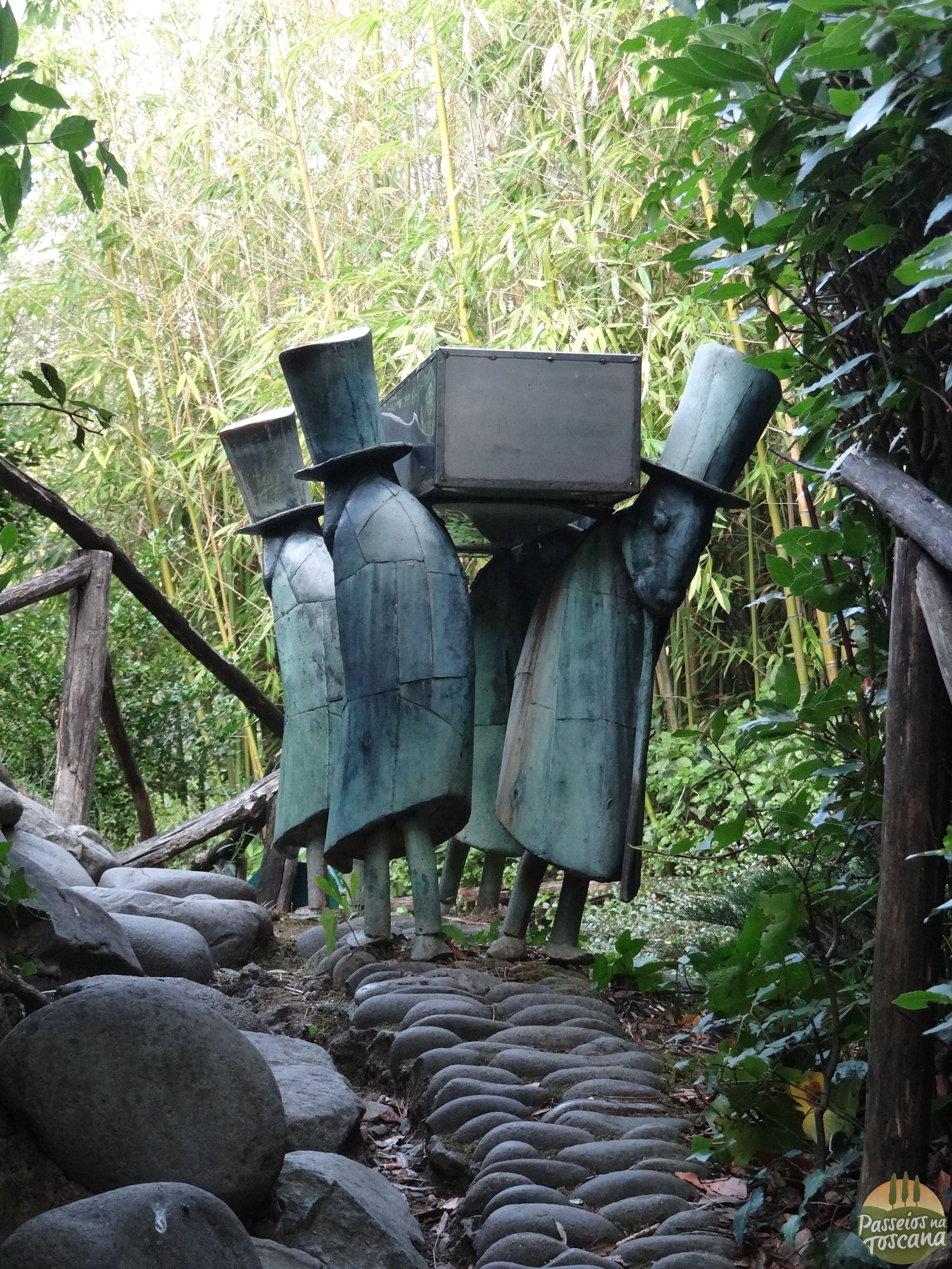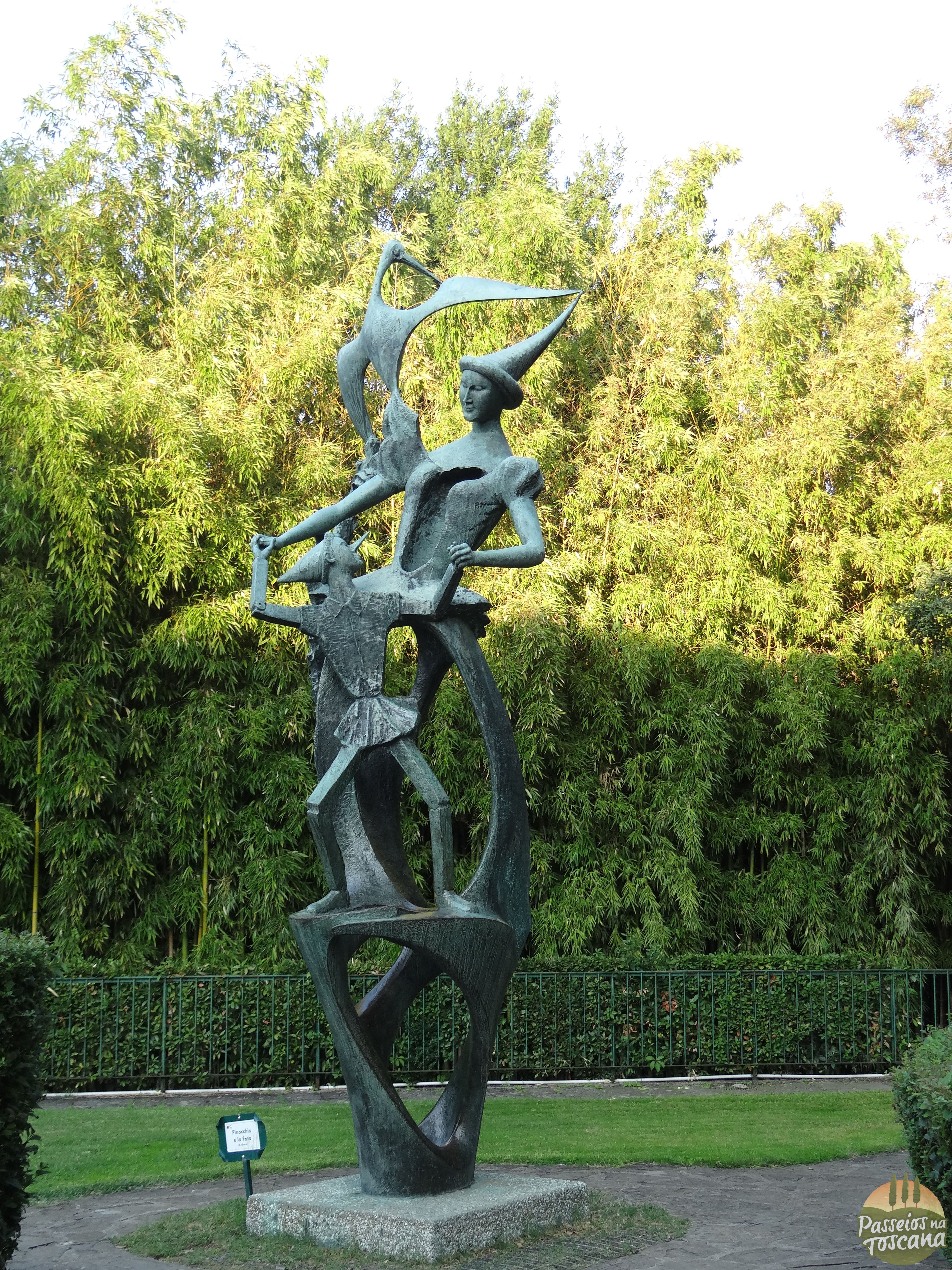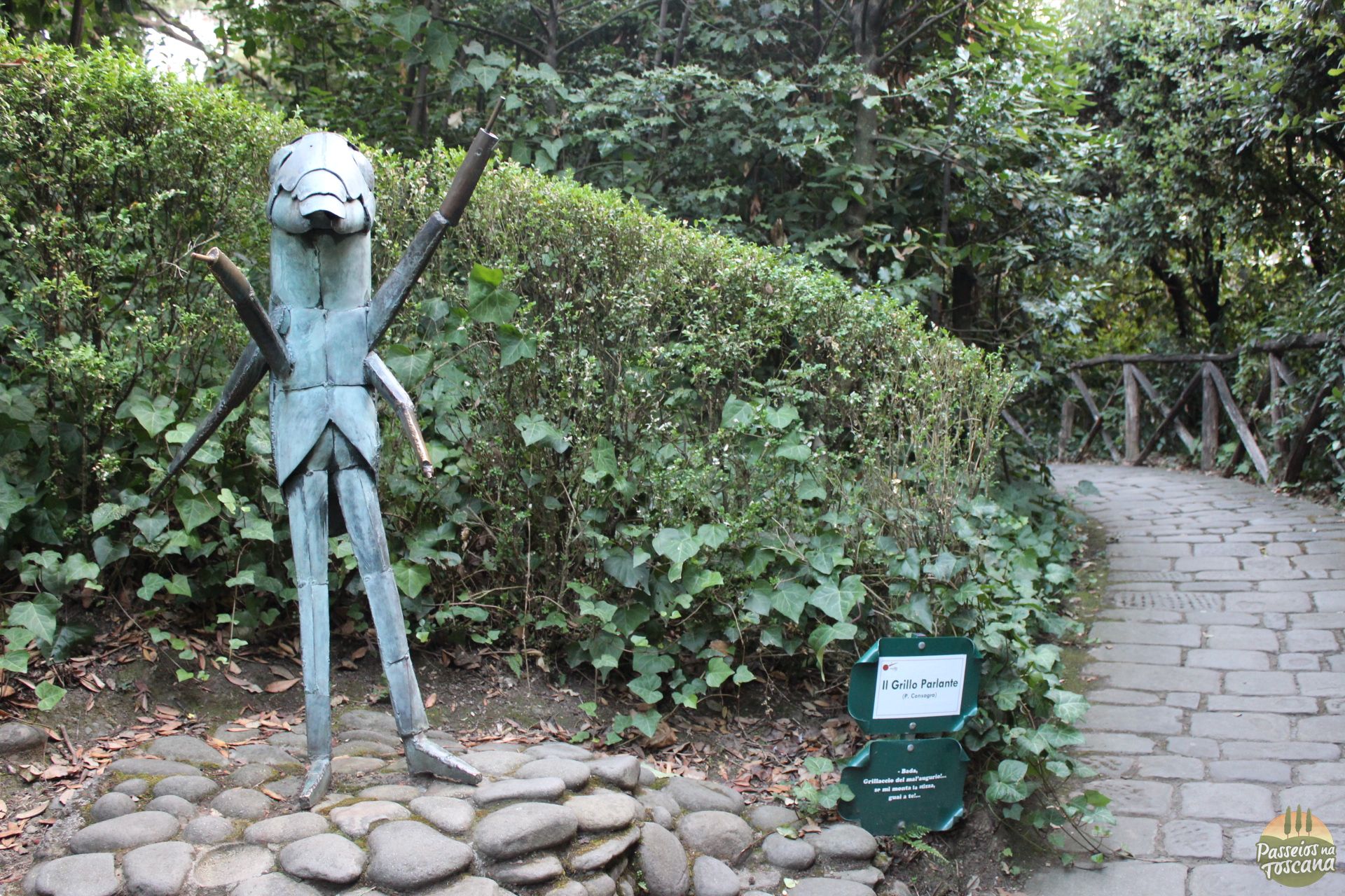 Logo de cara, a gente percebe, pelo mapa que fica bem na saída do Museu, que há um caminho temático seguindo a linha da história do livro, levando os visitantes por estátuas dos personagens na ordem em que aparecem no livro. Então, você pode viver de novo, o encontro de Pinóquio, com a raposa e gato, ouvir um conselho sábio do Grilo Falante (ele é conhecido como Grillo Parlante em italiano) e encontrar com a Fada do cabelo azul.
