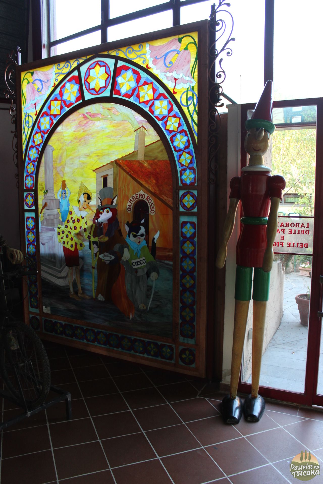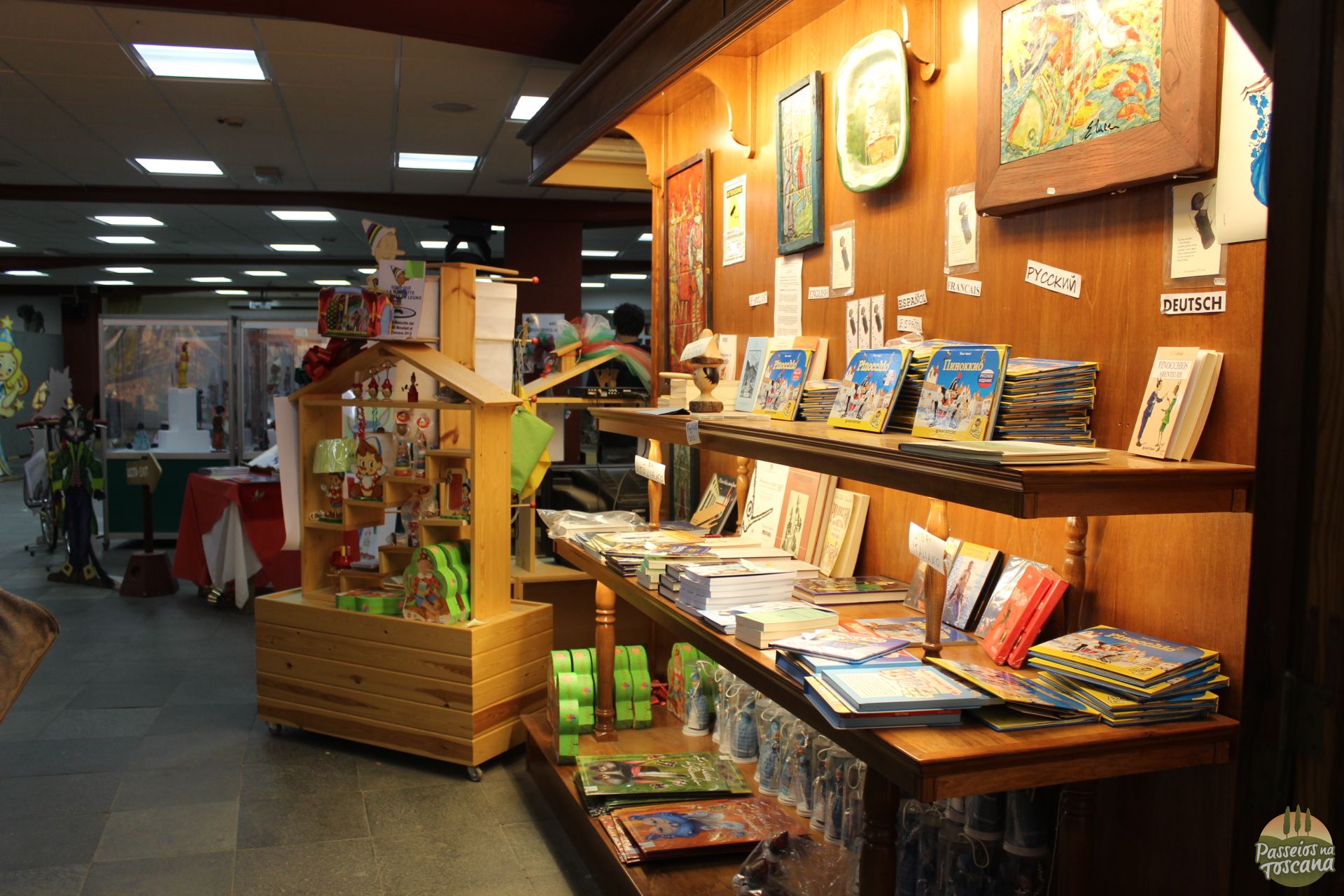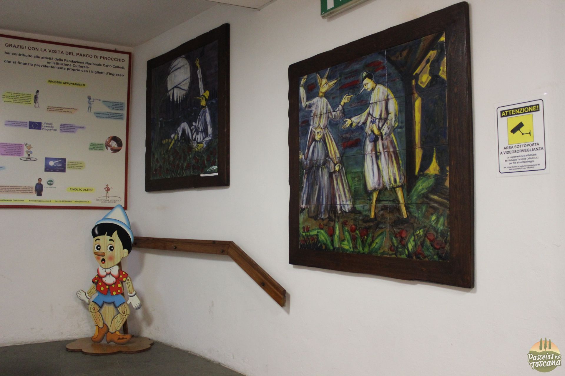 Começamos a nossa visita no Parque Pinóquio no museu na entrada do parque, que abriga uma coleção de livros do Pinocchio em várias línguas e pinturas que tem ele como tema e outras obras de arte.