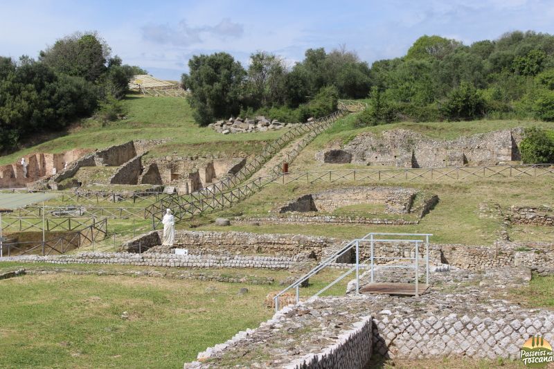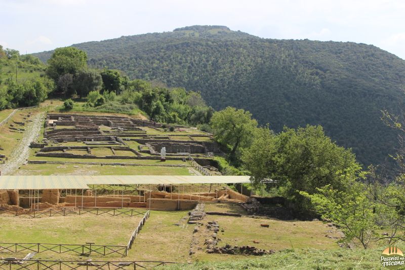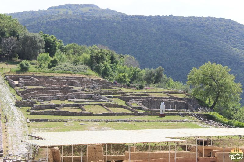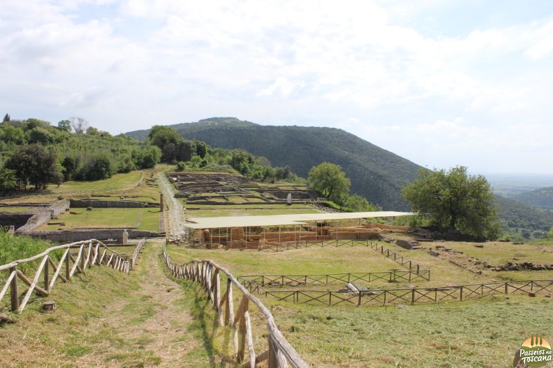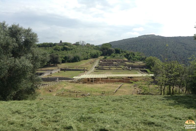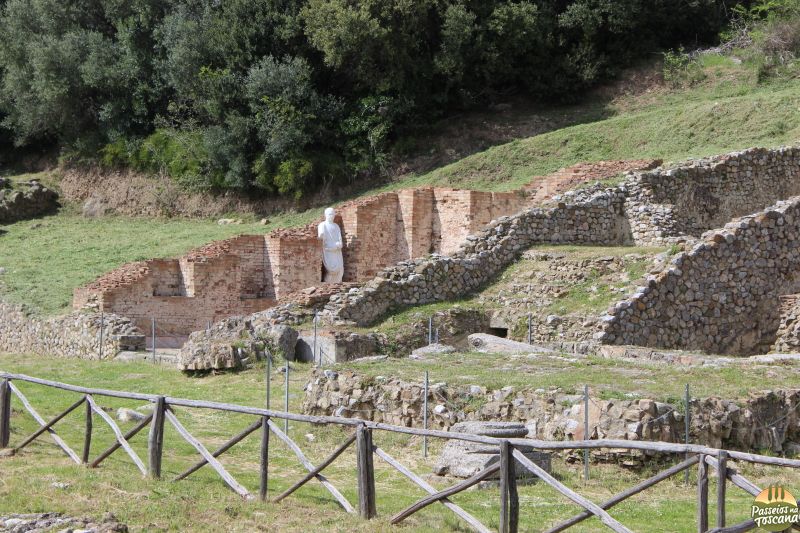Você pode admirar algumas tumbas etruscas na sala, ainda as paredes, que são os restos etruscos mais importantes de Roselle, restos de casas, restos de construções que datam do VII e VI sec. a. c., um pequeno templo, as termas e o anfiteatro.