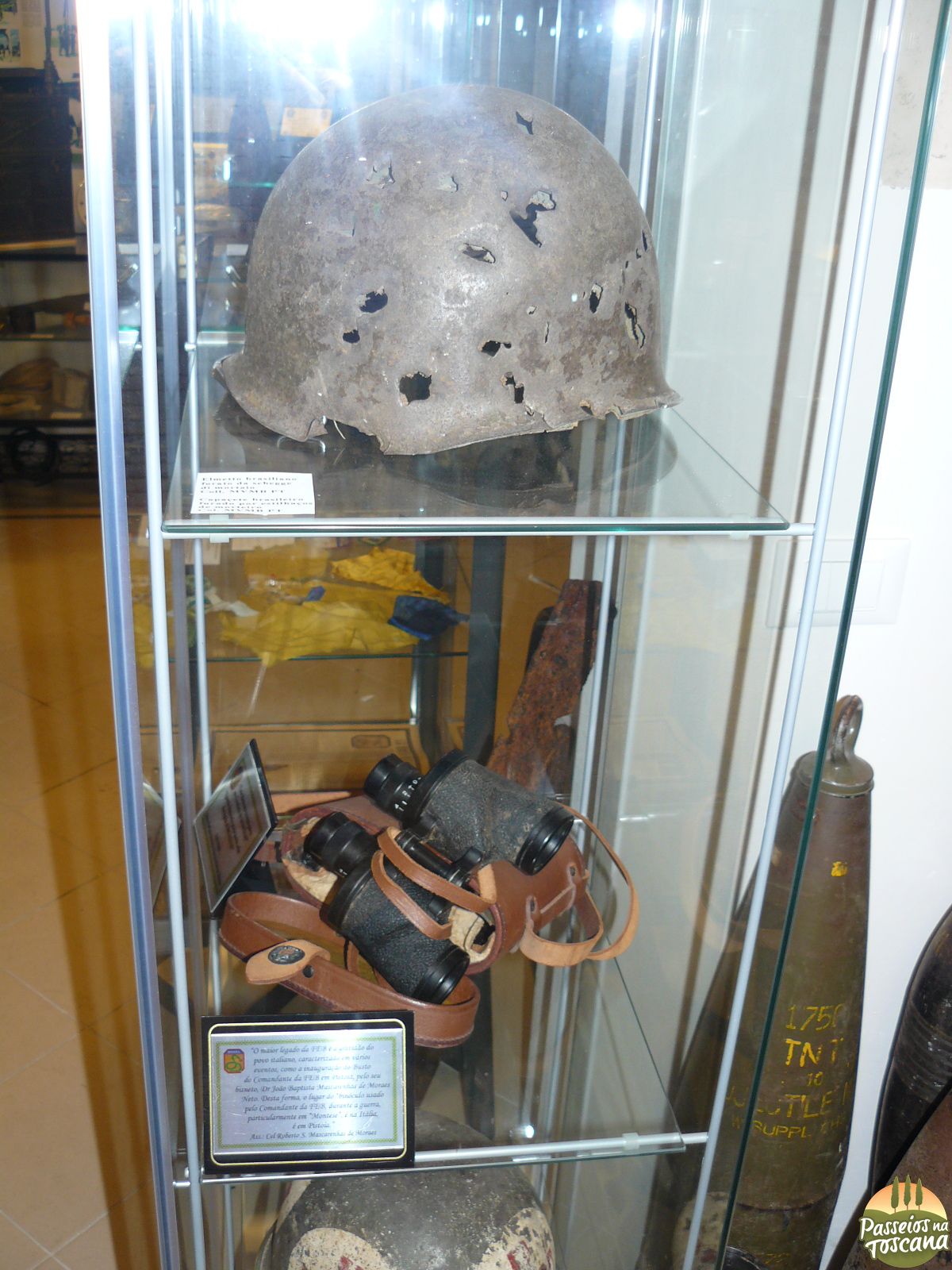 No pequeno museu encontramos equipamentos de guerras, cartas, postais, fotos, capacetes, armas, uniformes, veja algumas fotos abaixo: