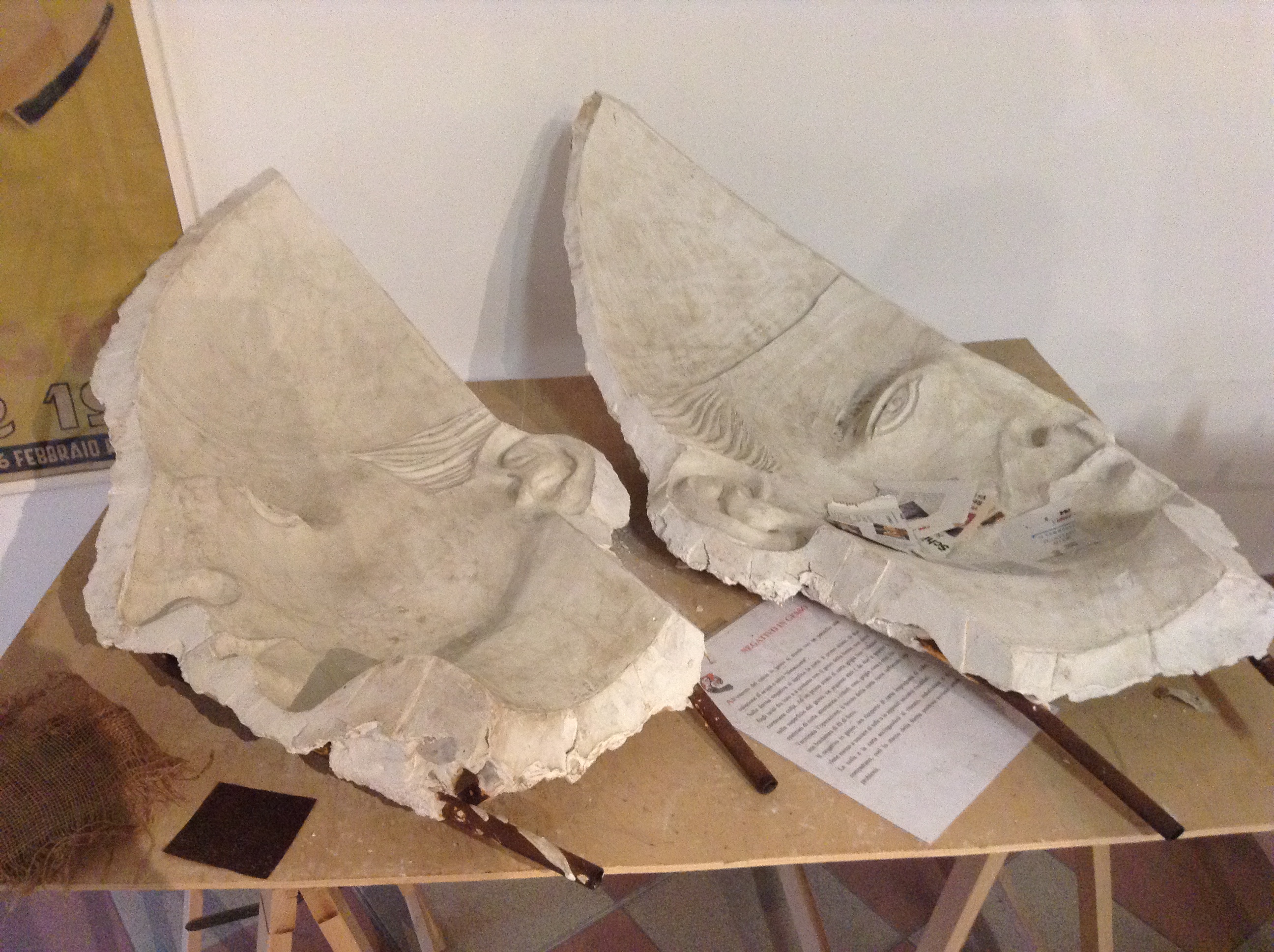 As matérias-primas são a argila e papel marche que fabricam: modelos de cabeças, baixos-relevos, corpos, figuras de animais, e muito mais, evidenciando a genialidade, a arte e o artesanato dos construtores.