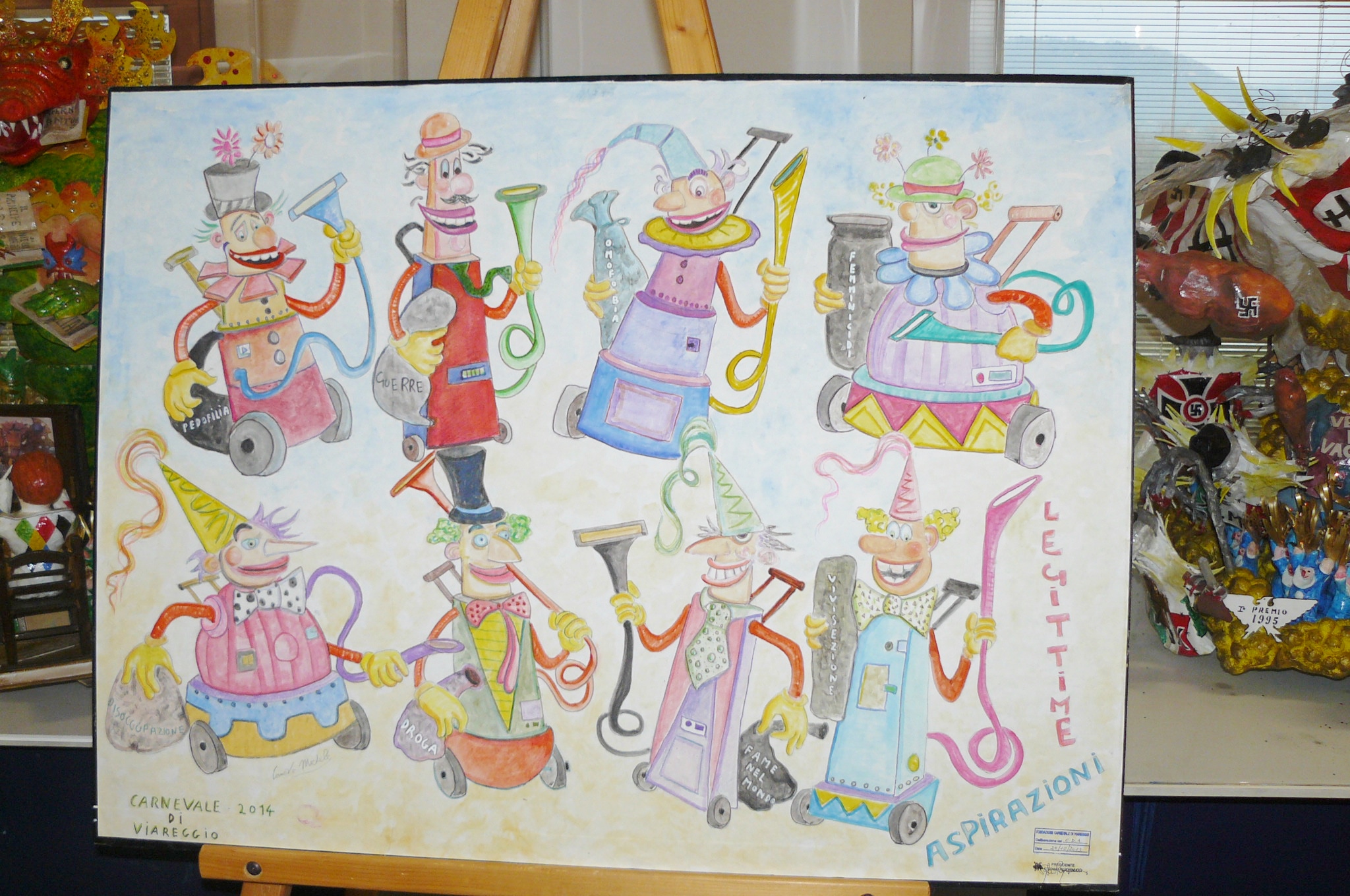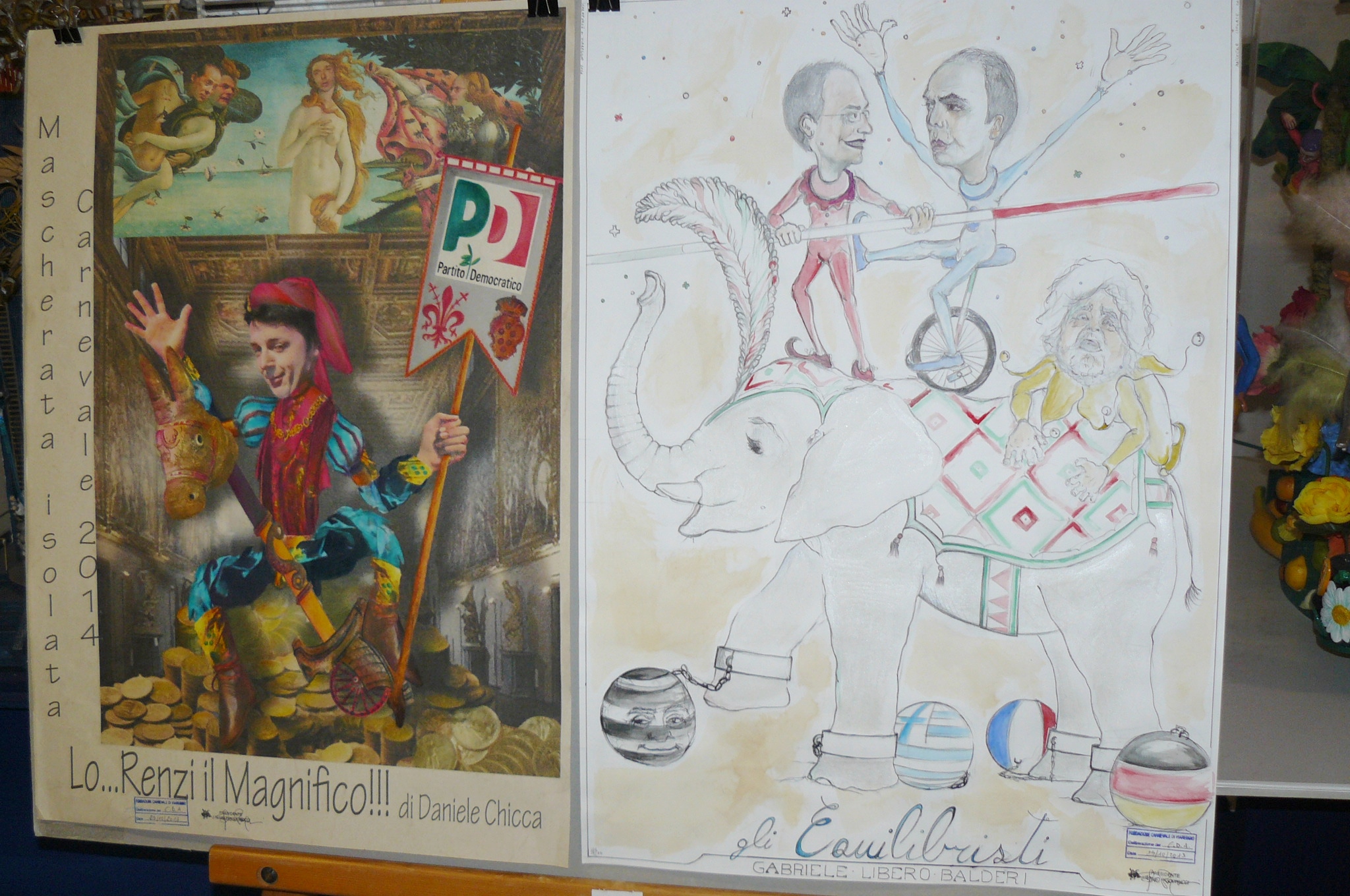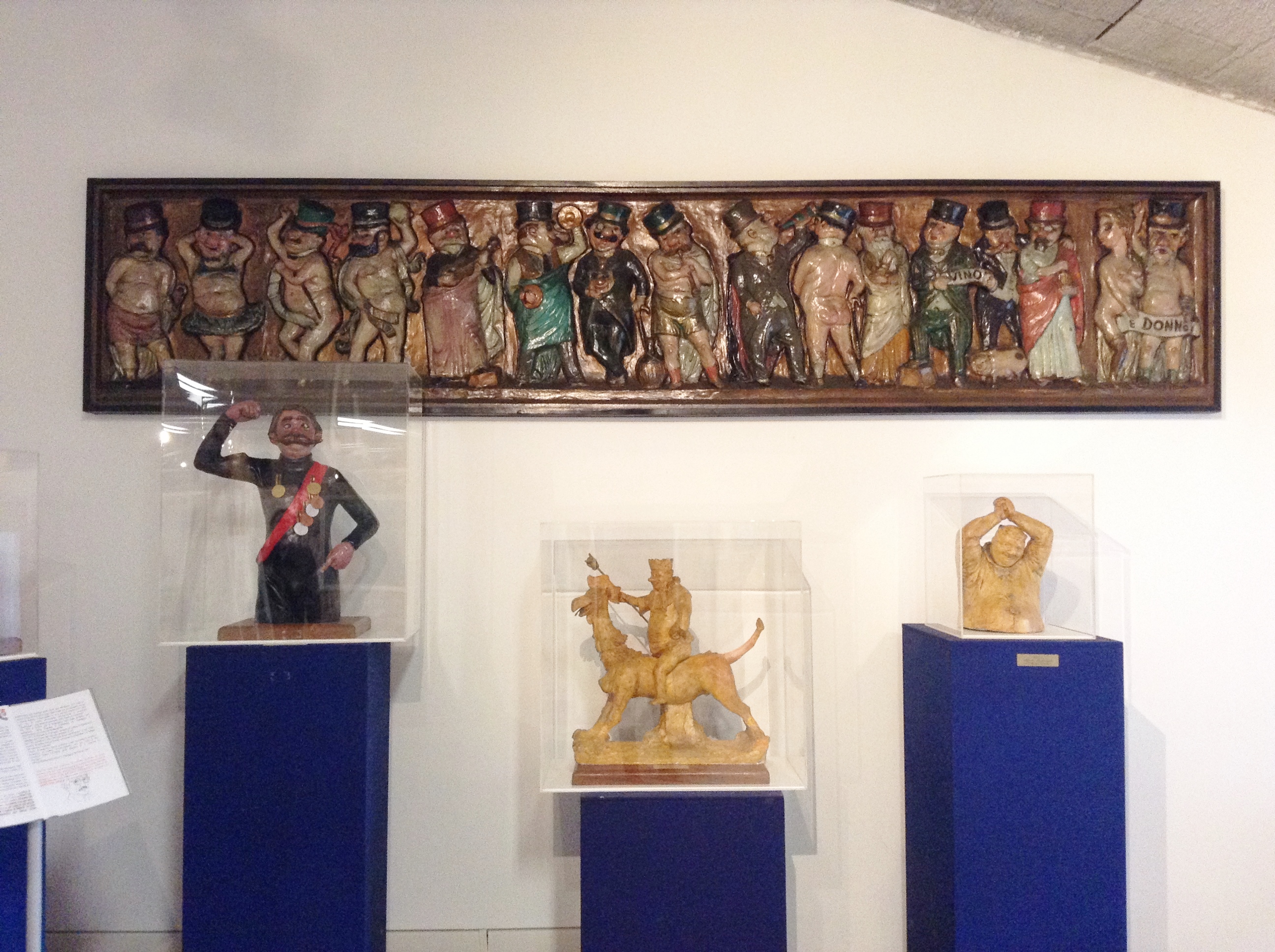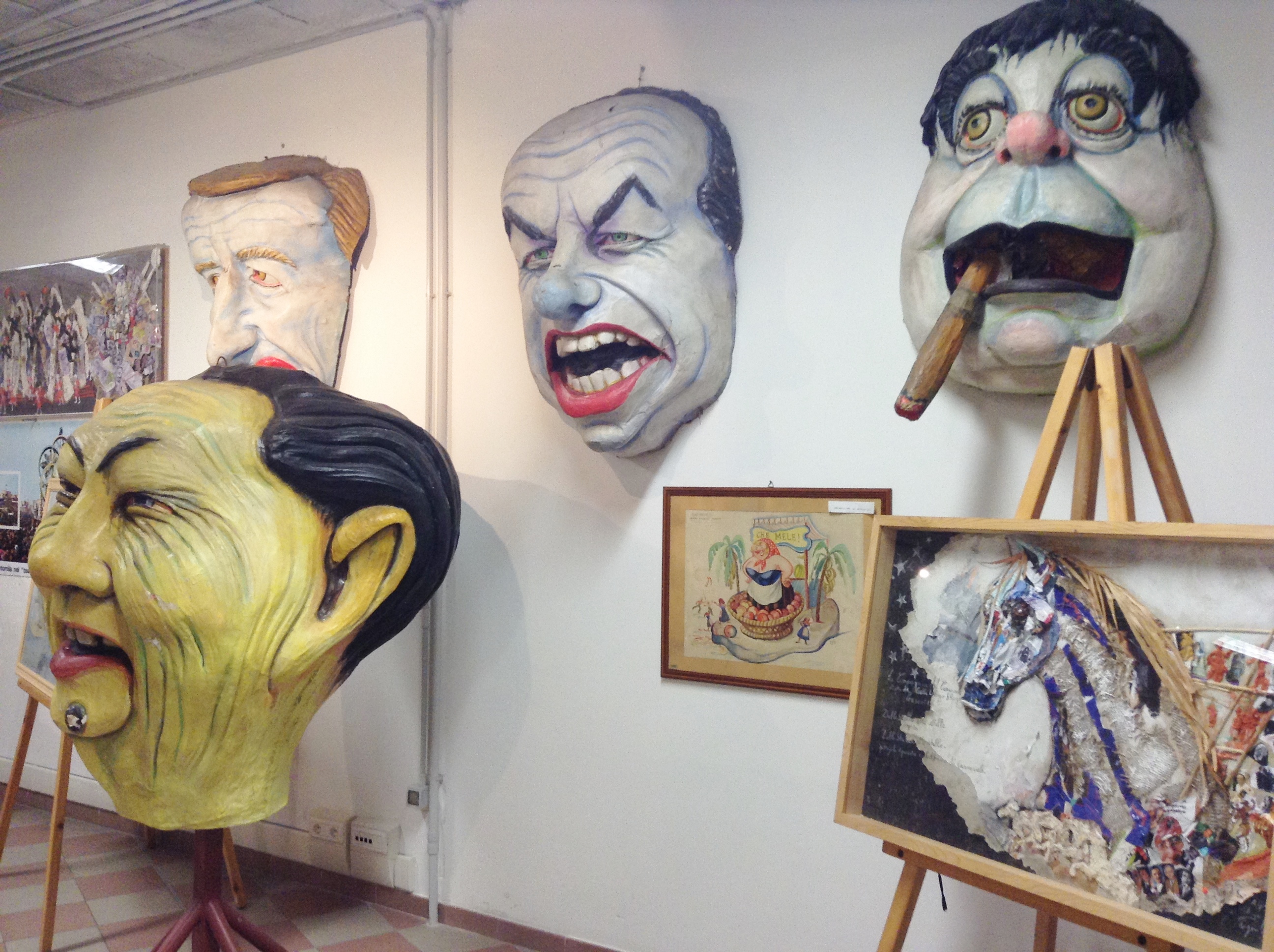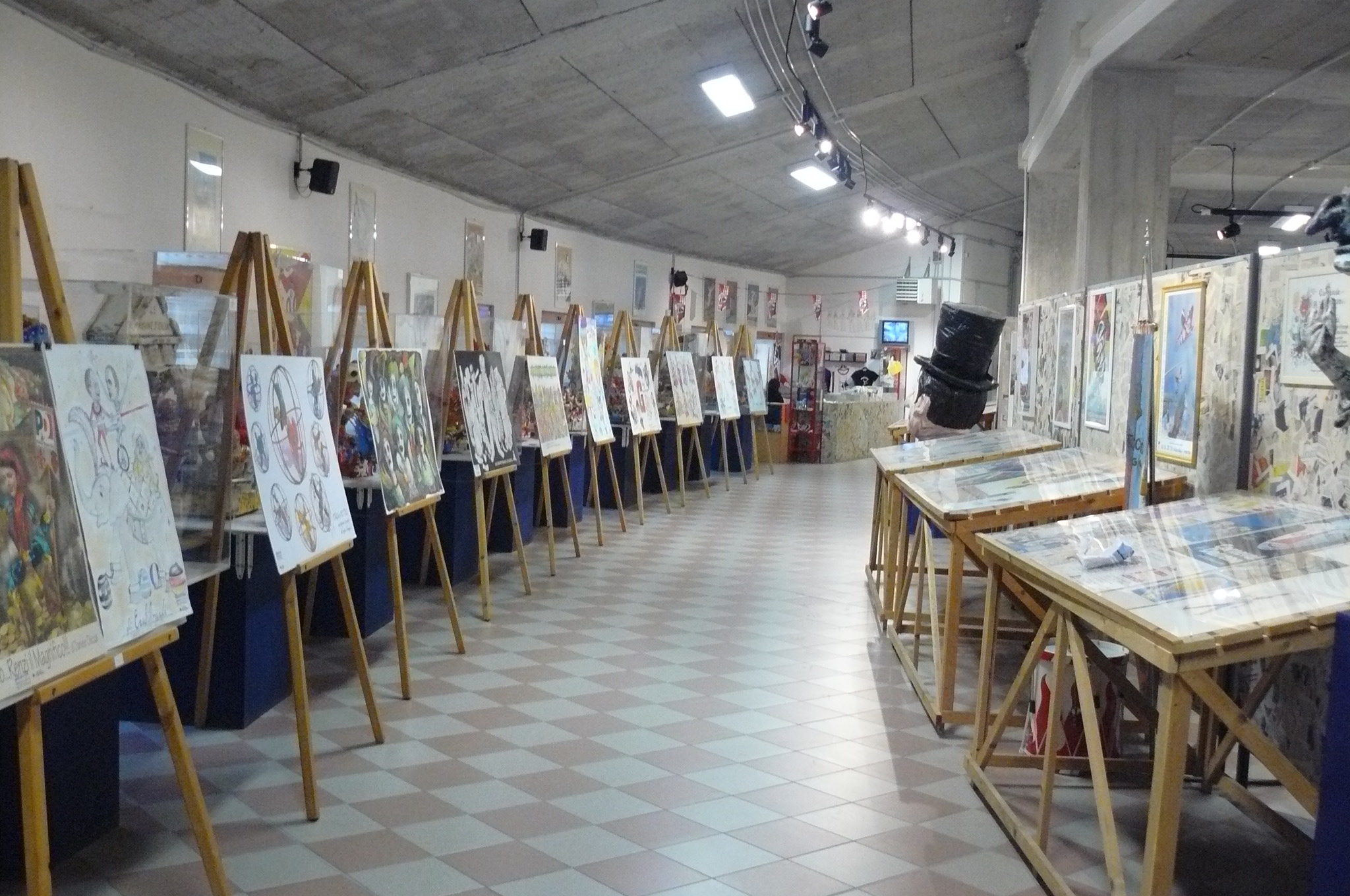 O museu ainda é possível observar as fases de construção, a partir do esboço para o produto acabado, o nascimento da máscara, a técnica de papel marche, ou “carta a calco” viareggina“, como é chamado. Revelando assim a habilidade desses artistas extraordinários para capturar e expressar a sátira viareggina, graças à linguagem da caricatura, mostrando os vícios e defeitos da civilização moderna.
