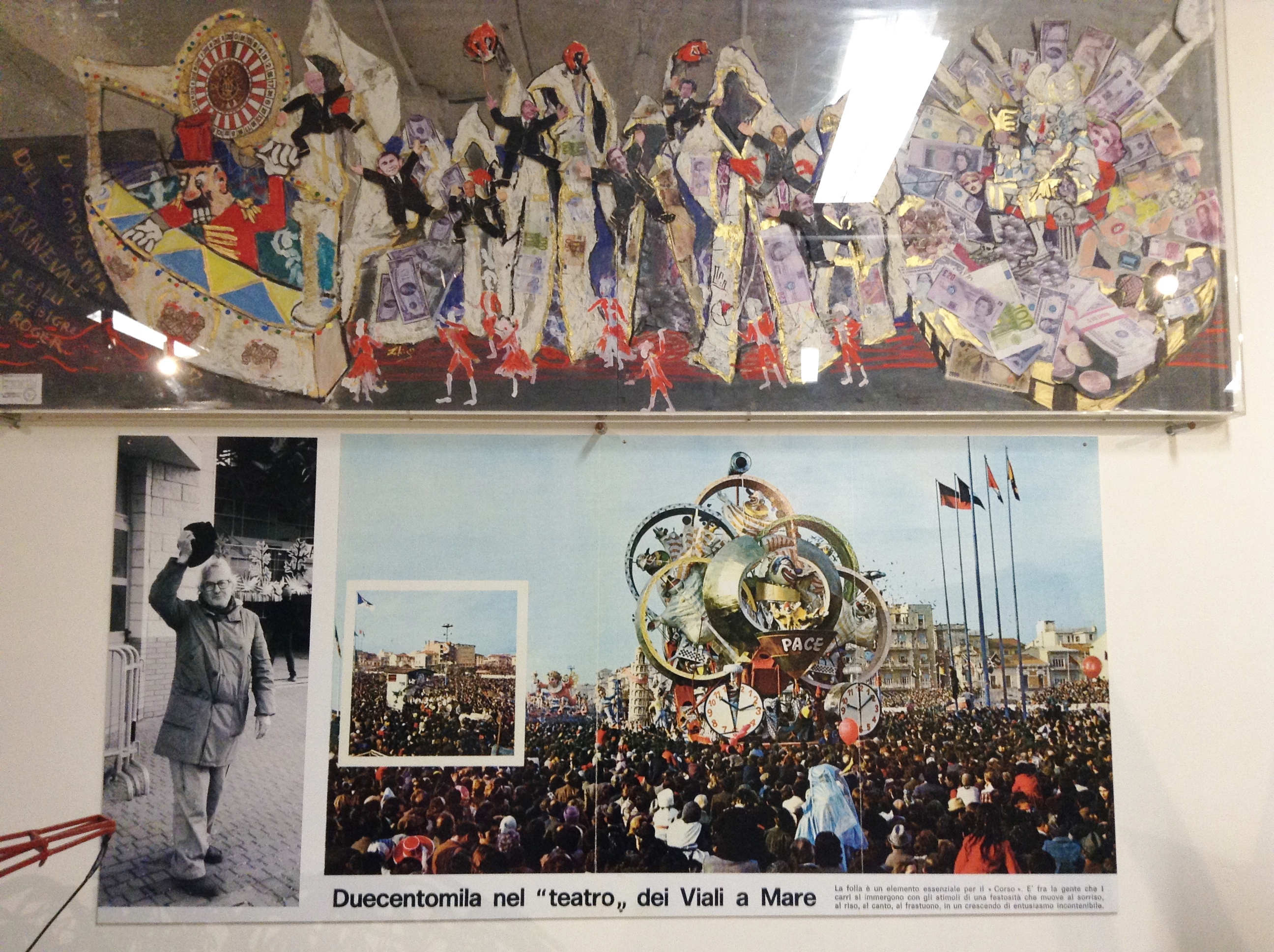 Ainda há uma seção mostrando como era o local do desfile, o viale Regina Margherita, próximo ao mar de Viareggio desde o inicio do Carnaval até hoje.