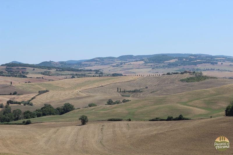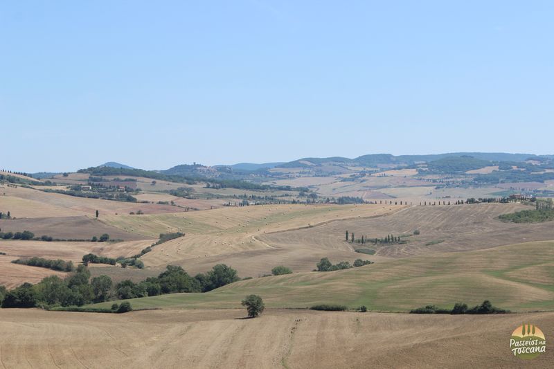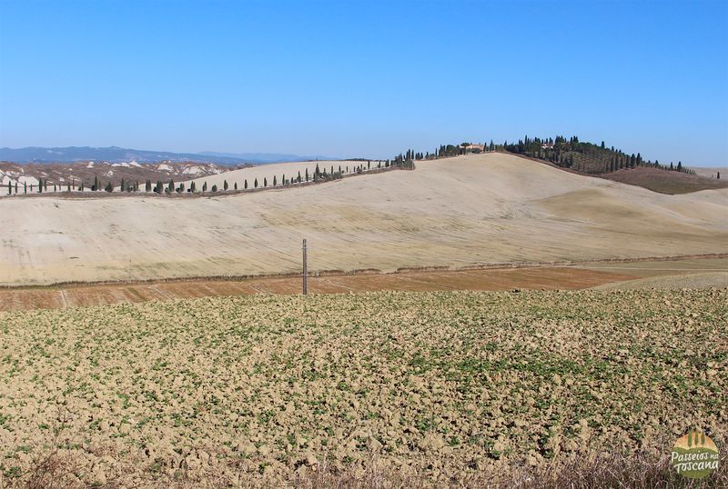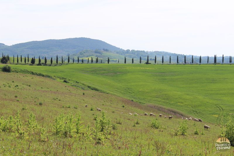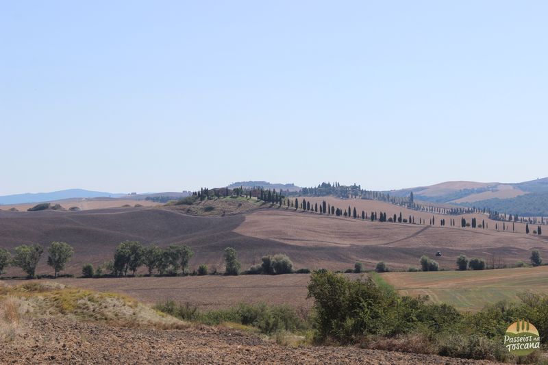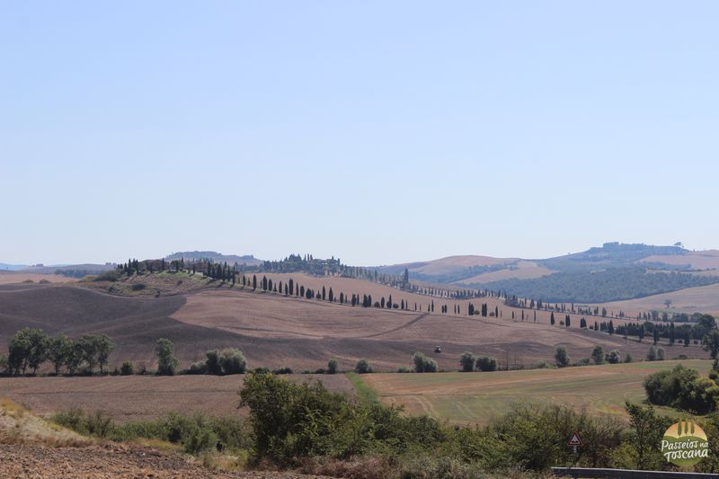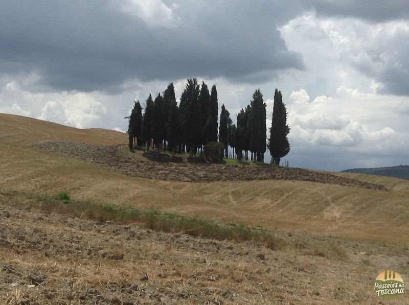 Outra característica são os cipressos e os pinos que foram plantados ao longo das estradas e em torno das fazendas, castelos e agriturismos para tampar o vento e claro, para embelezar a região.
