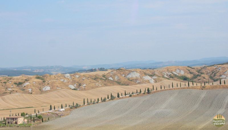 Para chegar àa região “ Crete Senesi”, você deve percorrer a Statale 326 (Siena-Biettolle), pegando a saída em Taverne D’Arbia, pegando a Statale 438 em direção à Asciano. Alguns quilometros depois e você encontra uma paisagem inesquecível, è uma emoção única!