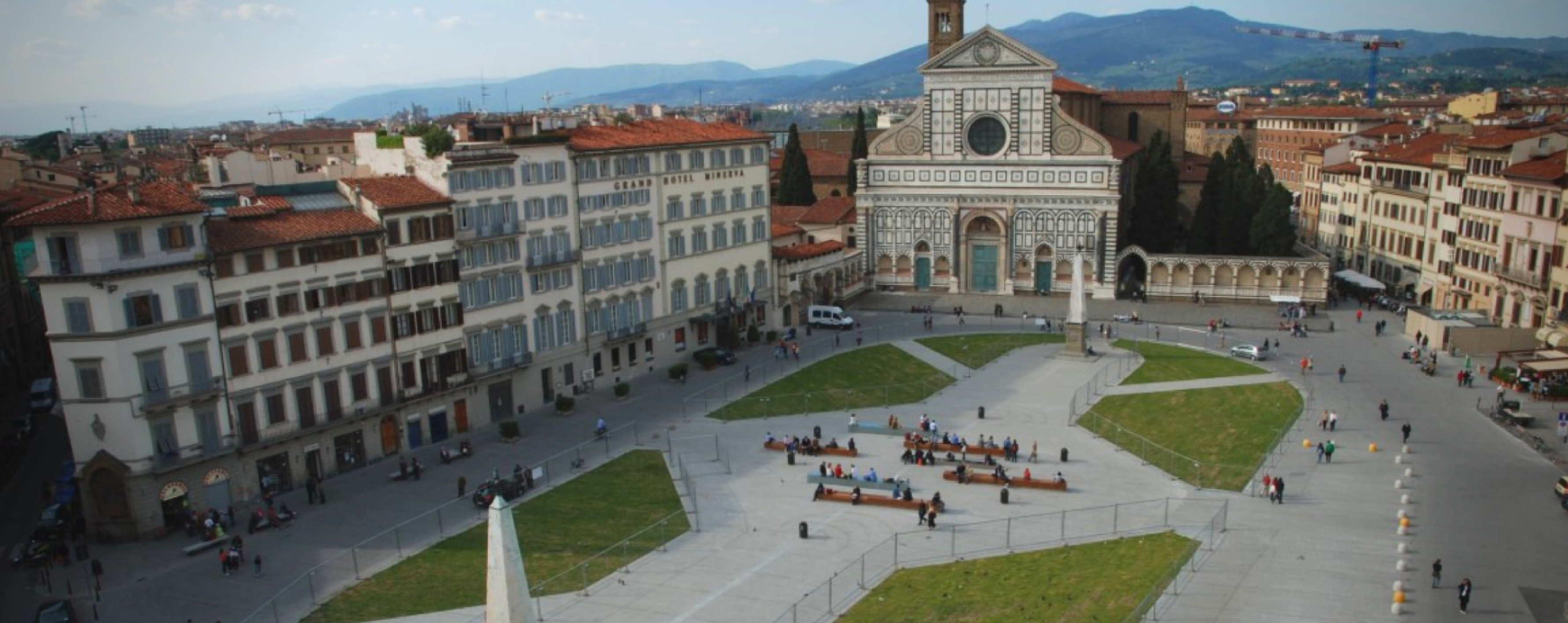 A Praça de Santa Maria Novella é uma das praças mais bonitas de Florença e ocupa o coração da antiga cidade. Fica pertinho do Duomo e da estação central, uma localização estratégica para aqueles que chegam em Florença e atrai todos os dias dezenas de turistas fascinados pela fachada da igreja, que é a síntese mais completa da arquitetura de Leon Battista Alberti.