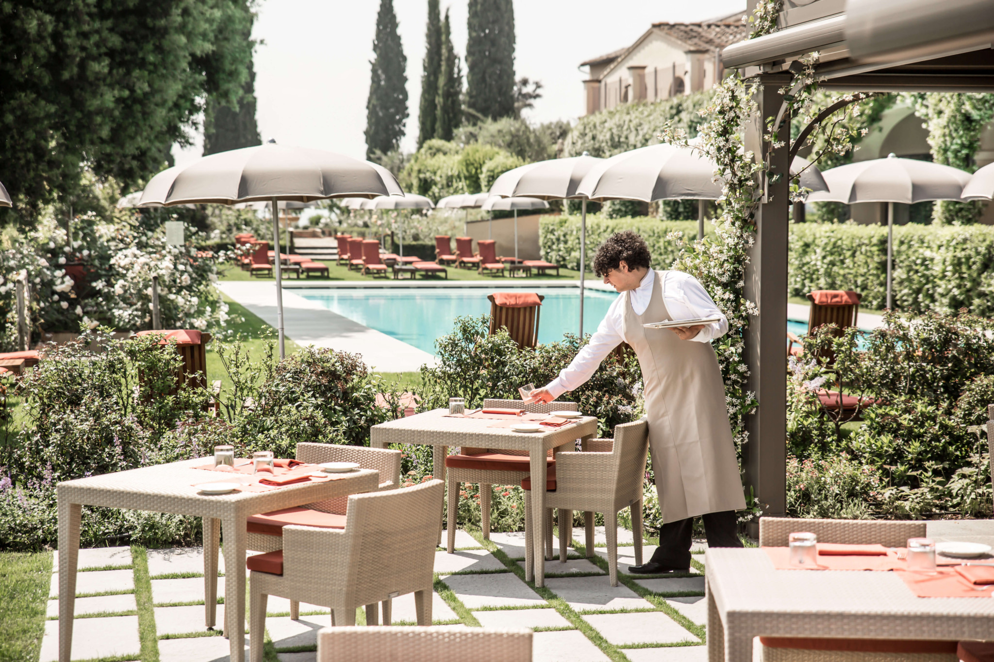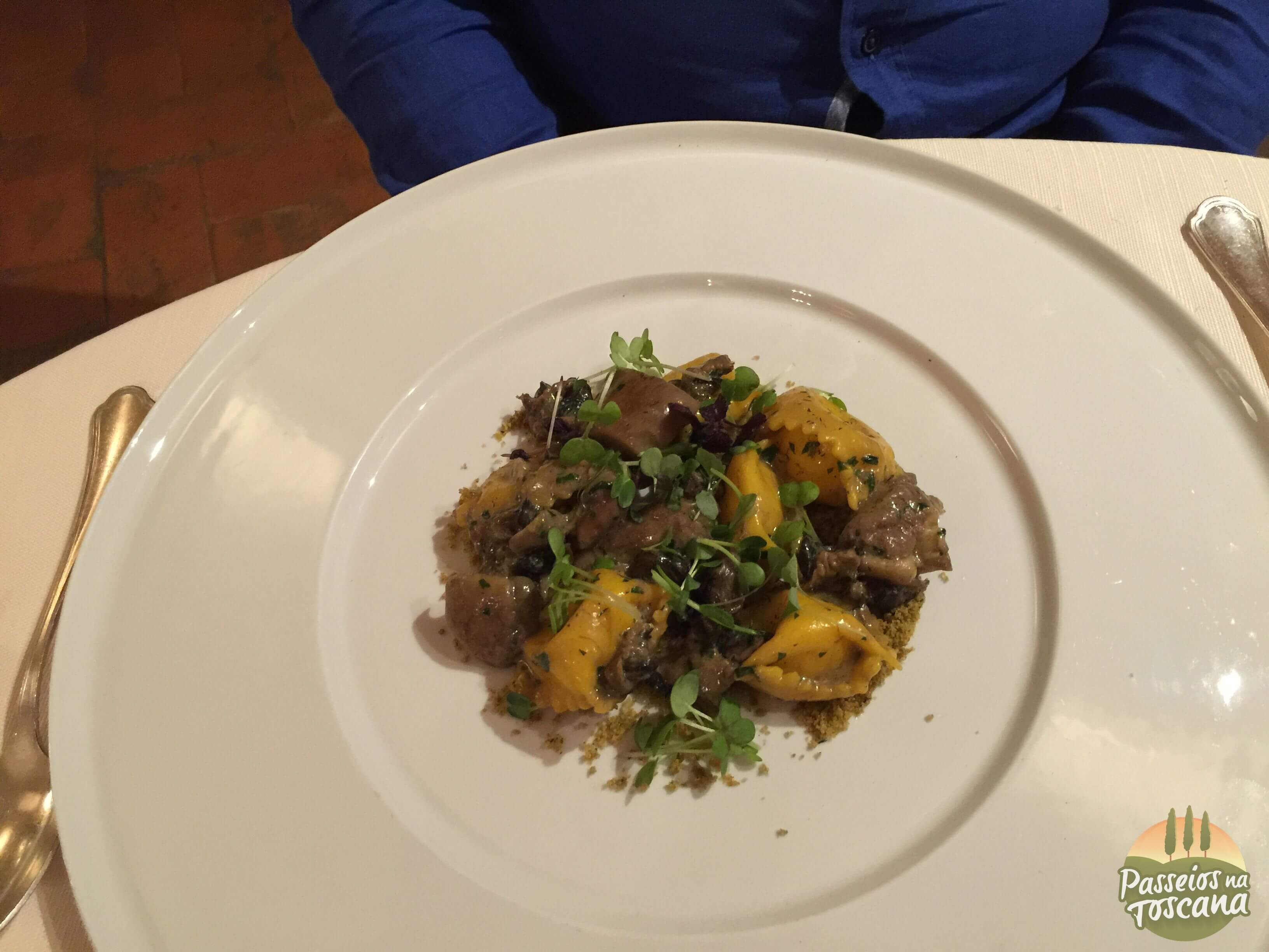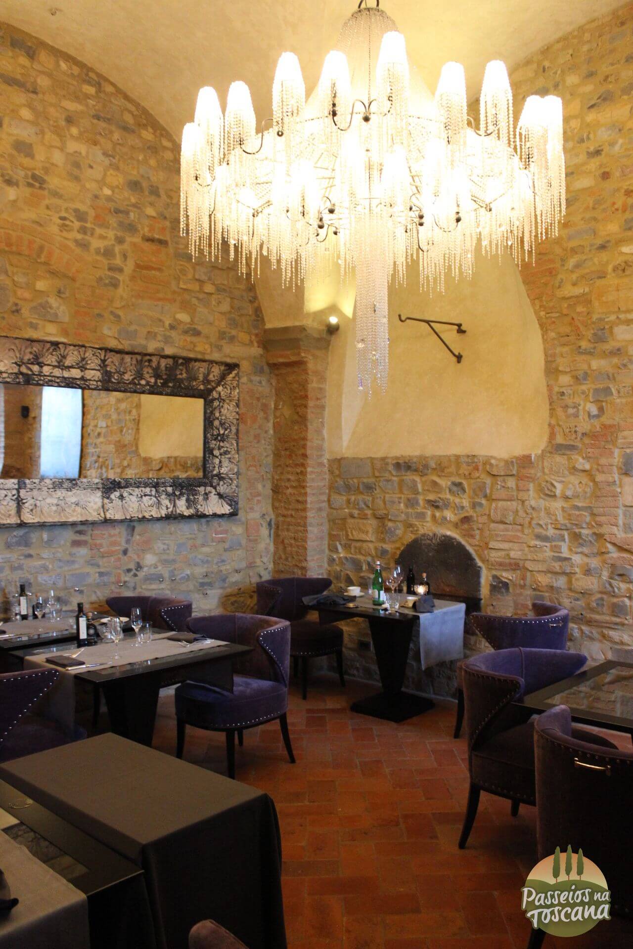 Há 2 restaurantes ali, o menor é um restaurante La Taverna, mais aconchegante, aberto para almoço e jantar. No verão é numa área ao aberto, perto da piscina e oferece pratos típicos da culinária toscana. No inverno é ao lado do bar interno, numa sala mais íntima.
