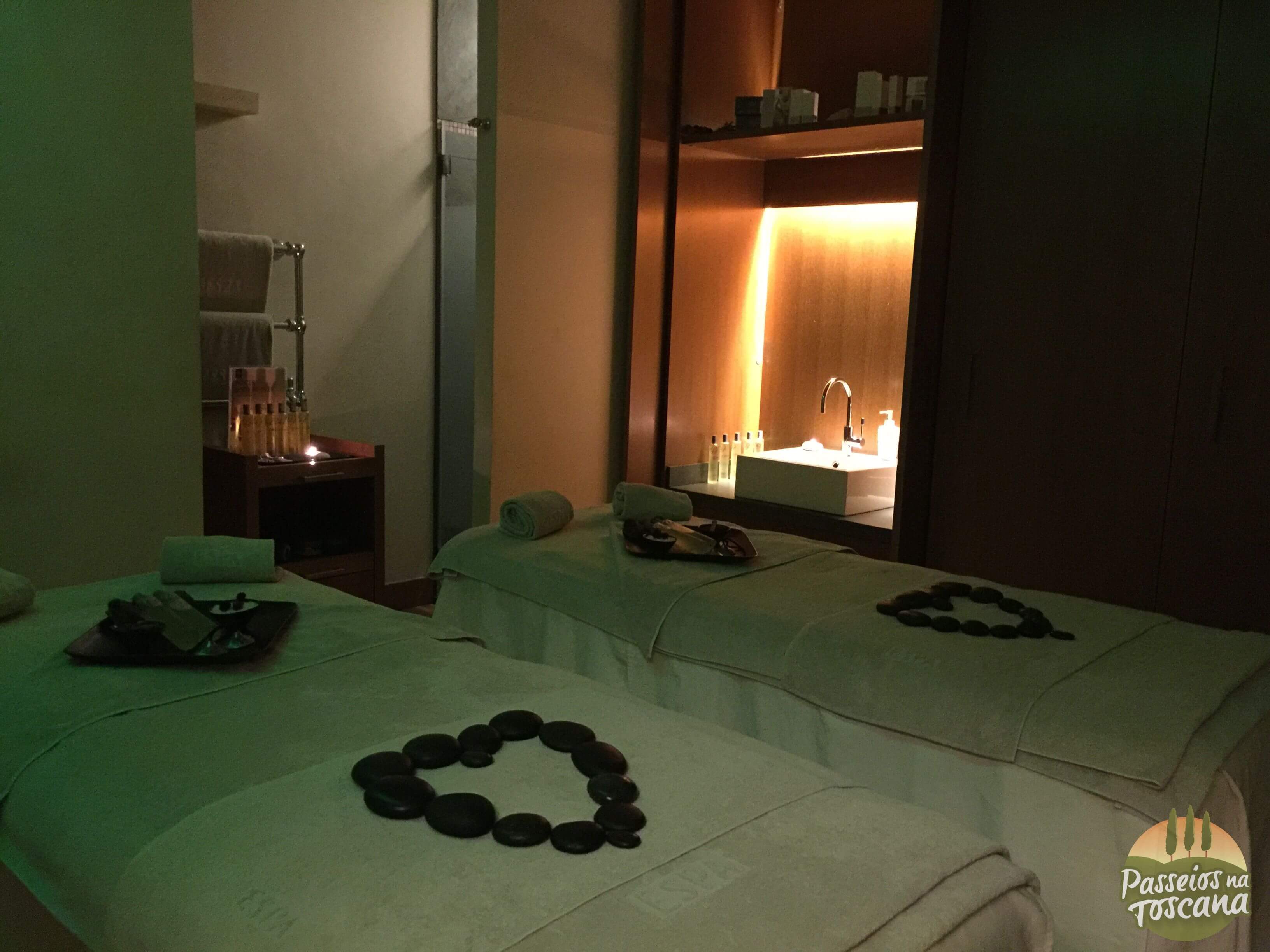 Eu fiz uma massagem durante a minha estadia, paguei 120 euros, e foi muito bom porque foi usado um óleo à base de azeite que aumenta muito à maciez da pele! Veja fotos do Spa.