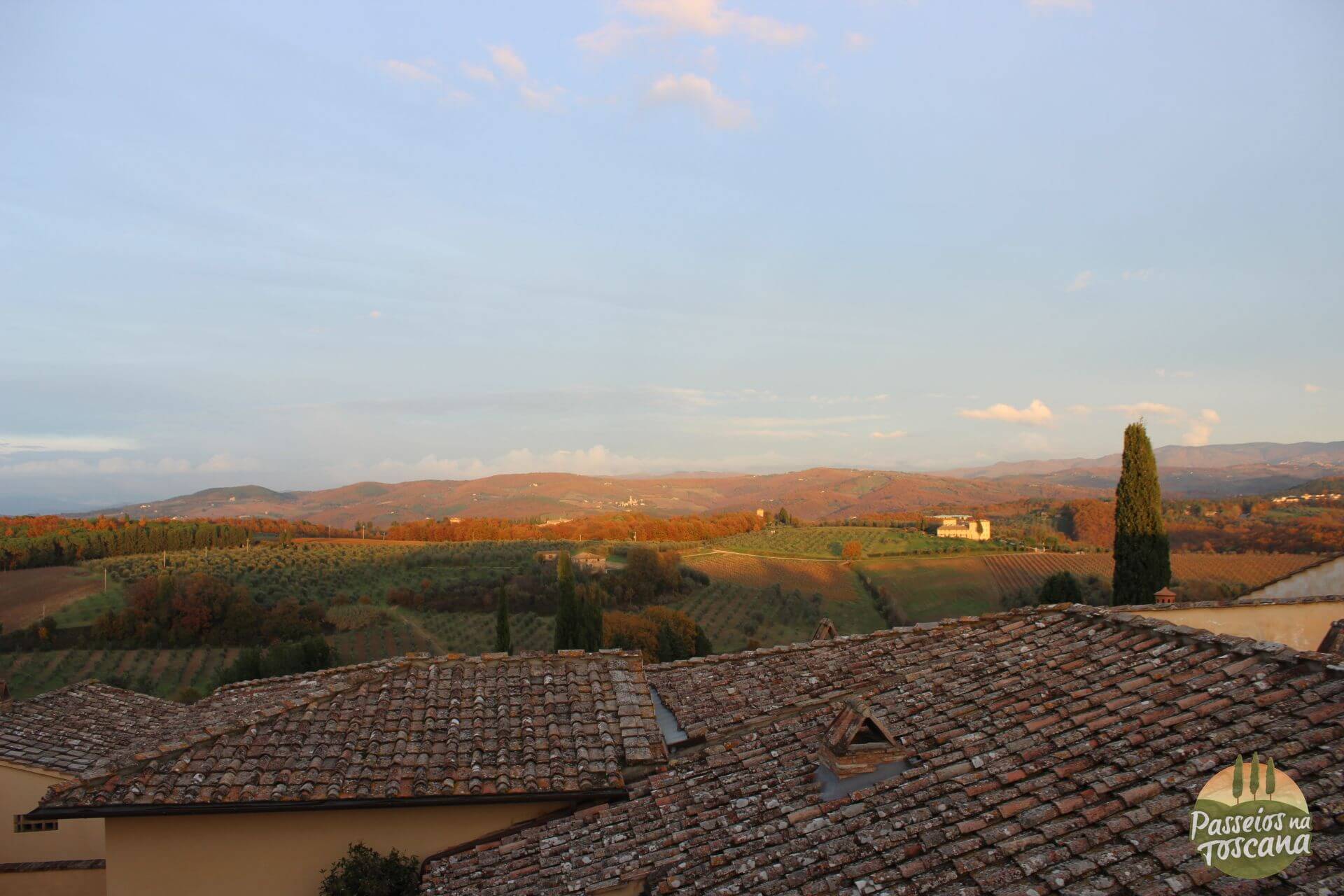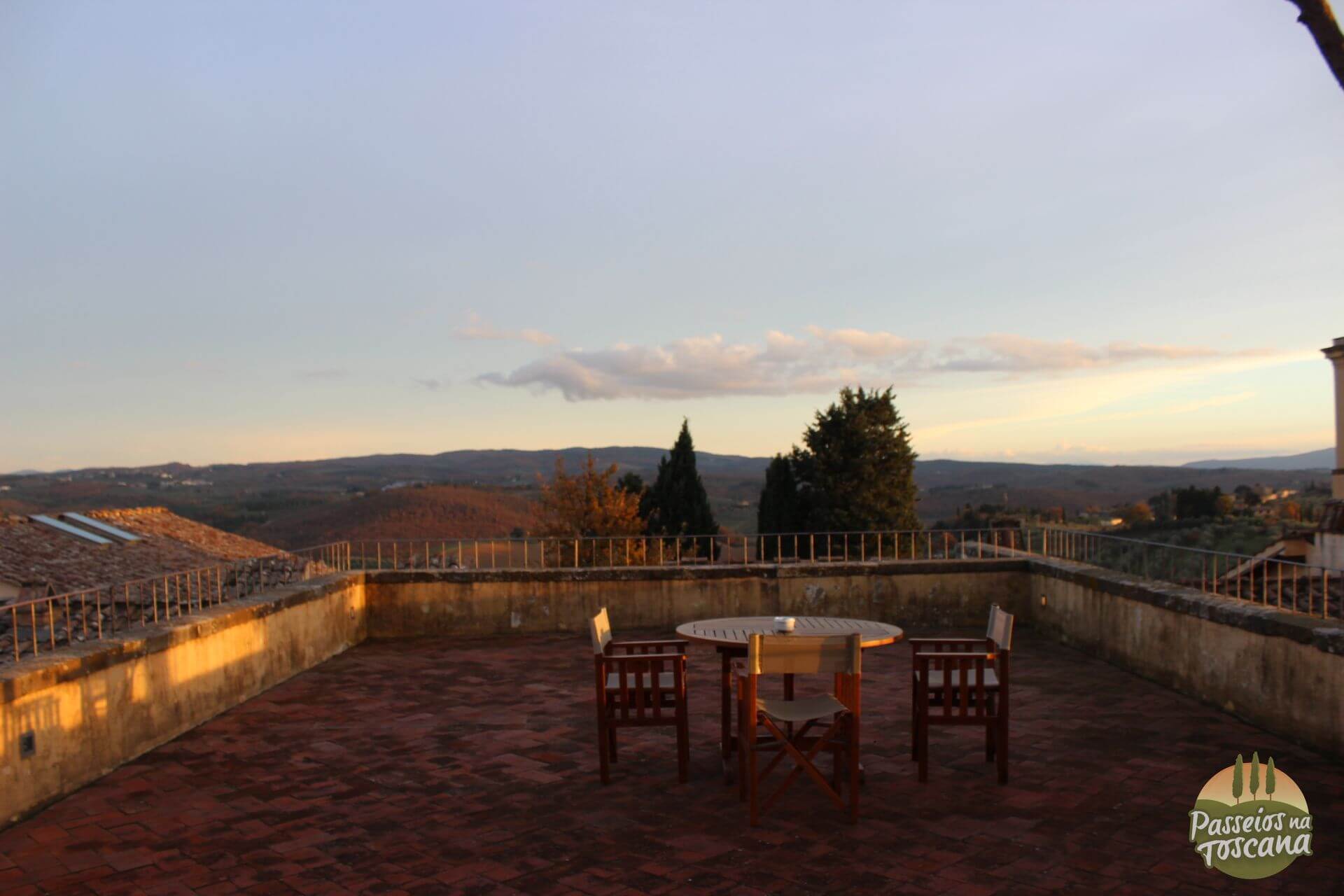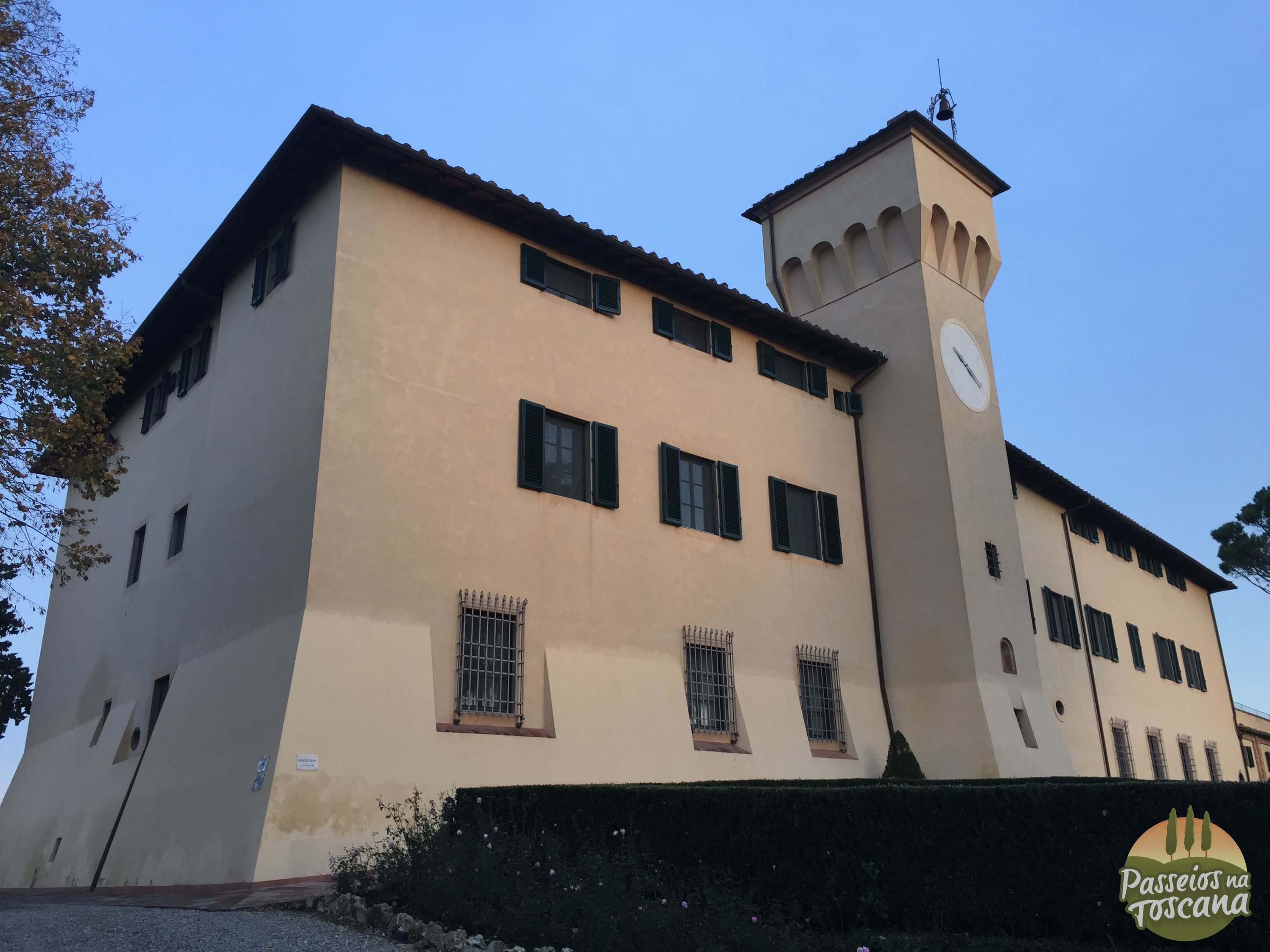 Na verdade o Castello fica no alto de uma colina com uma vista incrível e à pé de 10 a 15 minutos de Tavernelle Val de Pesa, e dali é fácil dali, visitar várias cidades interessantes como San Gimignano, Greve in Chianti, Siena, Monteriggioni, Volterra, Florença, e os outlets da região.