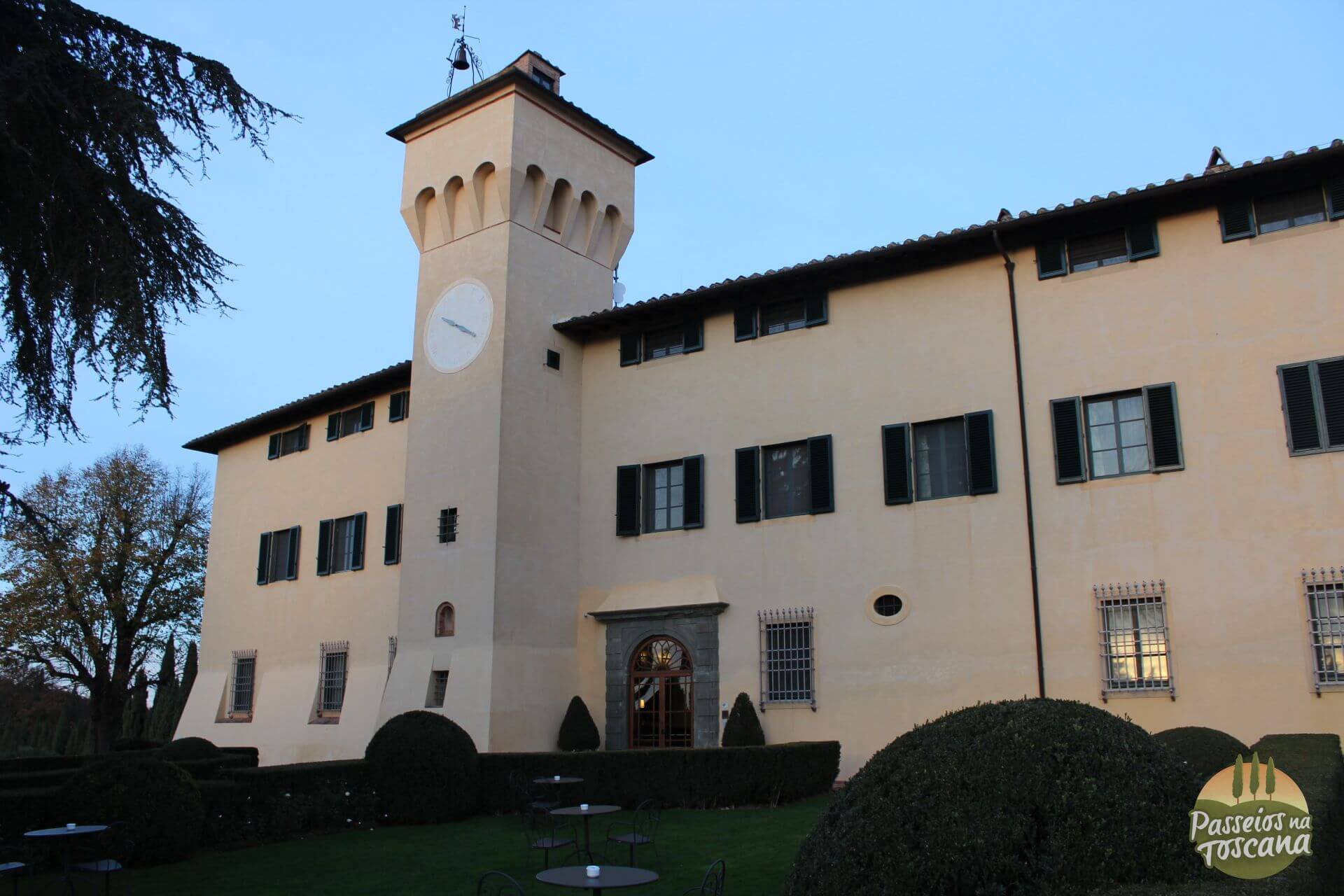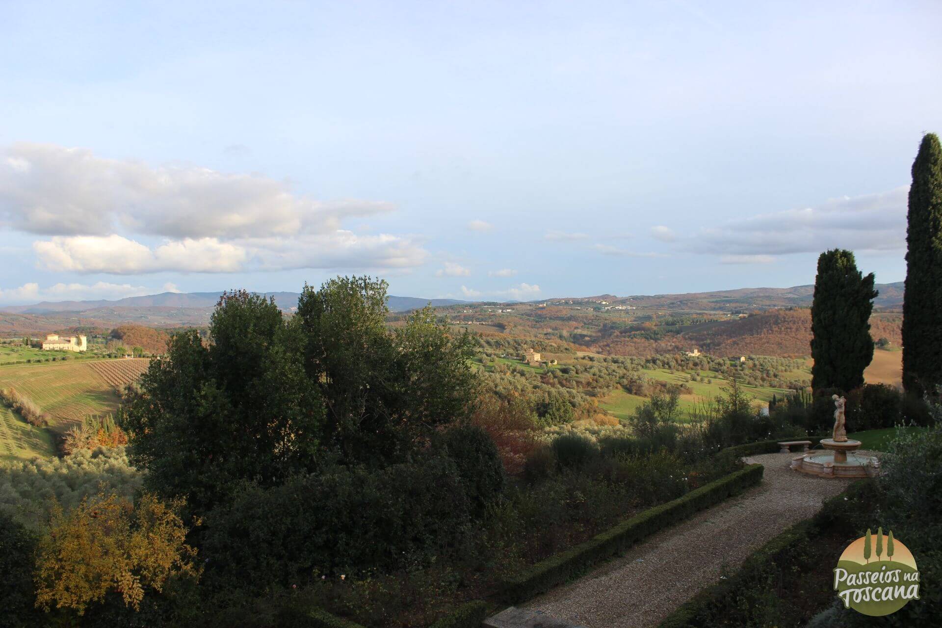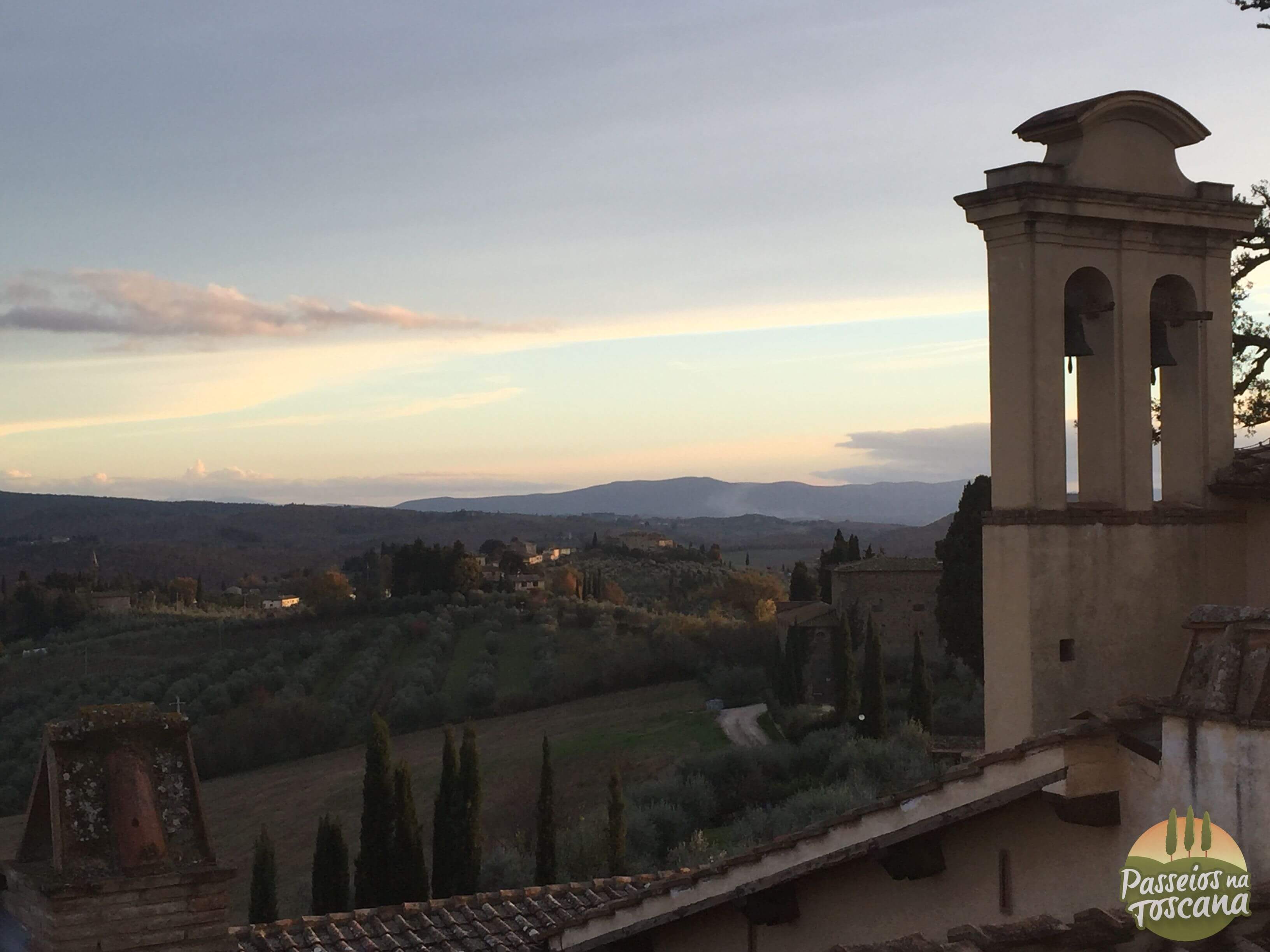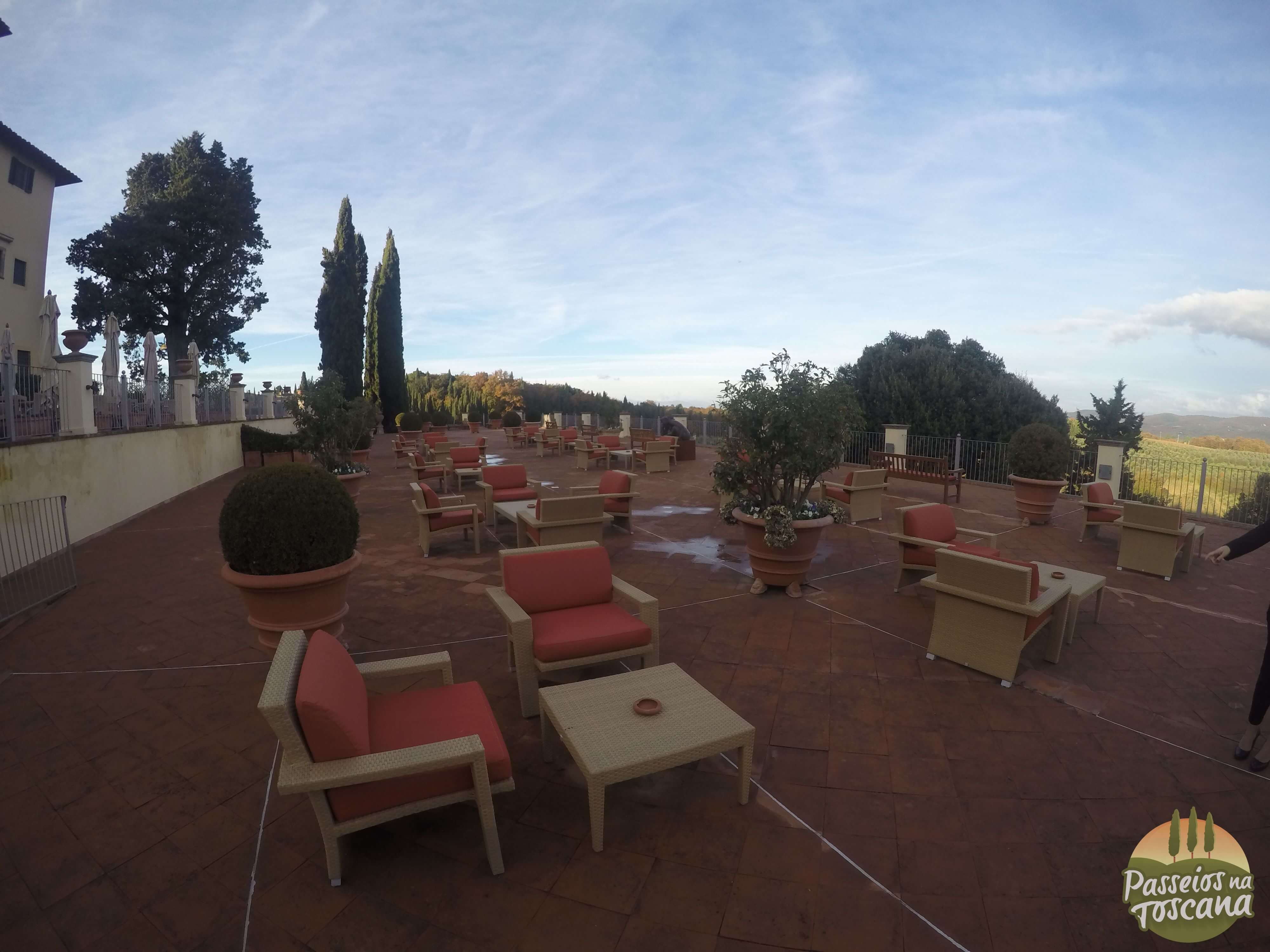 Na verdade o Castello fica no alto de uma colina com uma vista incrível e à pé de 10 a 15 minutos de Tavernelle Val de Pesa, e dali é fácil dali, visitar várias cidades interessantes como San Gimignano, Greve in Chianti, Siena, Monteriggioni, Volterra, Florença, e os outlets da região.