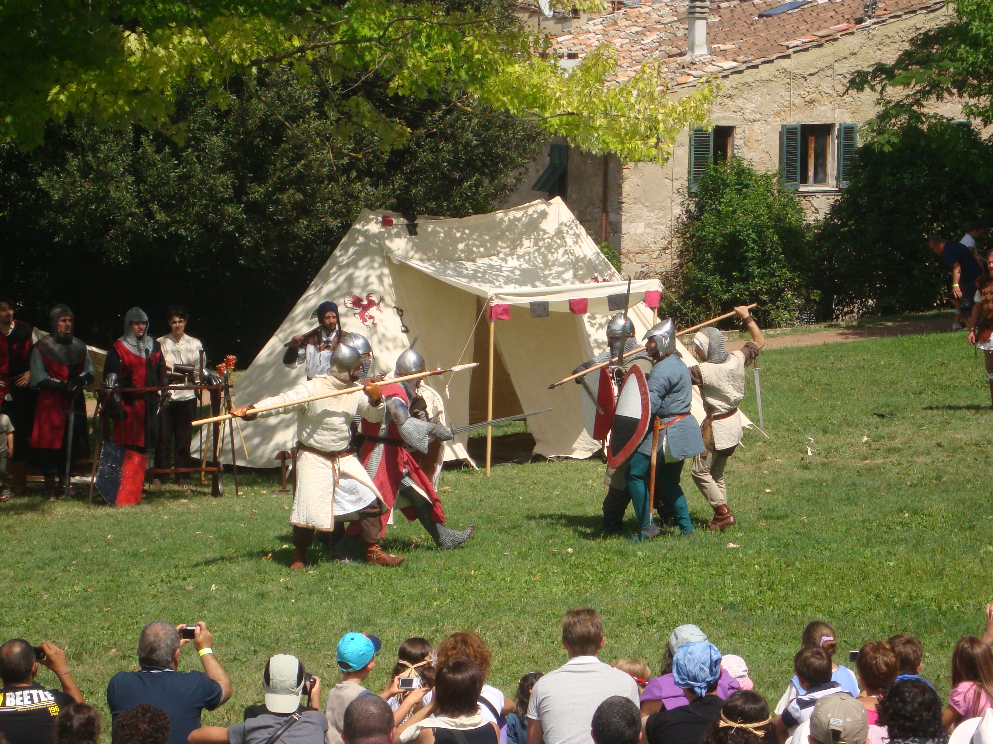 A cidade medieval cria vários espaços nos quais mostra as principais atividades de artesanato do passado: tecedor de lã, artesão de espadas, cartas antigas, couro, bijouterias, etc. Nas tabernas são servidos vinho, pão e carne arrostista, além de ter a Porchetta, o “churrasco” realizado com o porco inteiro. Bandas e malabaristas entretém o público no meio do calor do verão. A vila medieval é viva e movimentada.