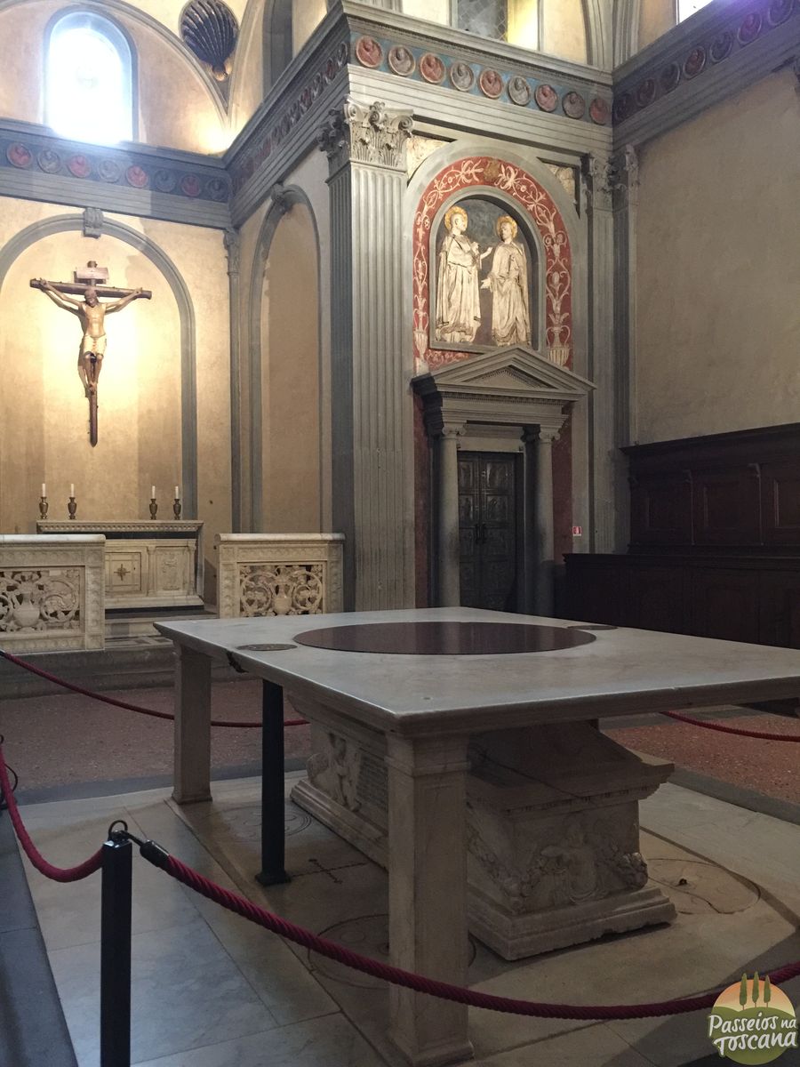 Próximo ao altar fica a Sagrestia Vecchia (sacristia velha), em que o gênio de Brunelleschi se juntou ao Donatello. A Sacristia tem a forma de um cubo, finalizada com uma cúpula. Ao interno fica uma pequena capela, dedicada à São João Evangelista, é dividida em 12 segmentos. O teto com afrescos reproduz a posição das estrelas e planetas de Florença, na noite de 4 de julho de 1442