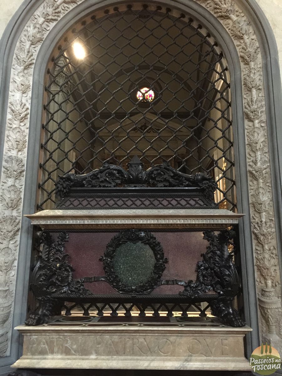 À esquerda da fachada da Basílica é fica a entrada dos claustros, parte do antigo convento, dos Tesouros da Basílica e à Biblioteca Medicea-Laurenciana.