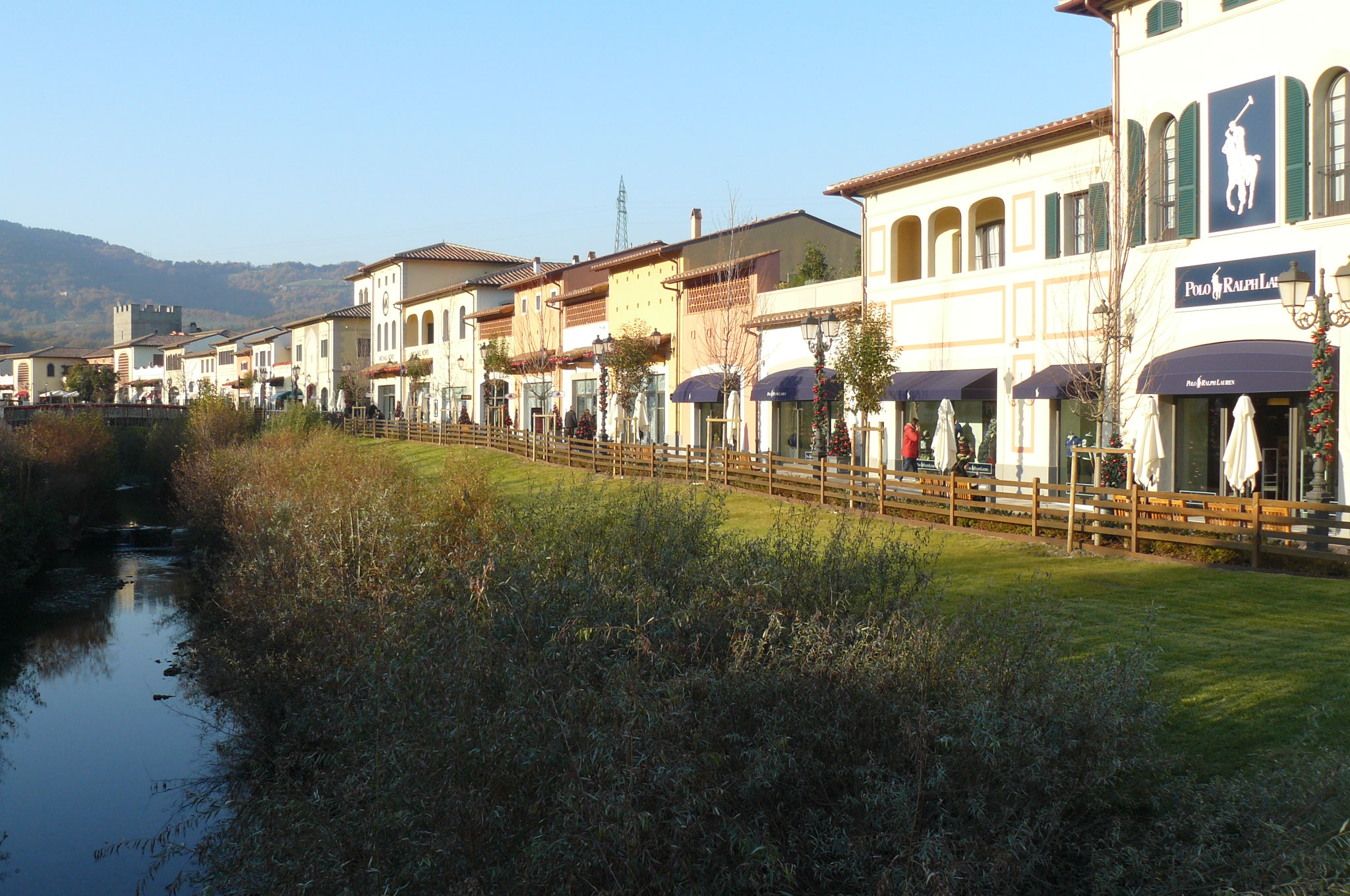 As lojas ficam situadas nas margens de um pequeno rio, que dá um ar mais romântico ao local, com várias pontes. O rio é natural, mas as construções, algumas parecem verdadeiros castelos, não.