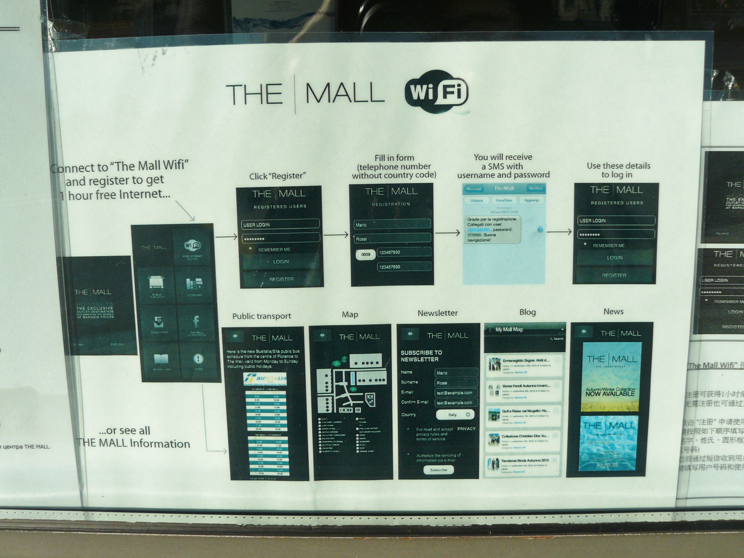 O The Mall é um outlet de luxo que fica próximo de Florença. É um outlet pra quem procura marcas de luxo como Gucci, Prada, Valentino, etc. Ele foi concebido em um ambiente aberto e arborizado. Muito parecido com um Fashion Valley, pois há também verdadeiros prédios-lojas de marcas de luxo como Diesel, Prada, Gucci e outros.
