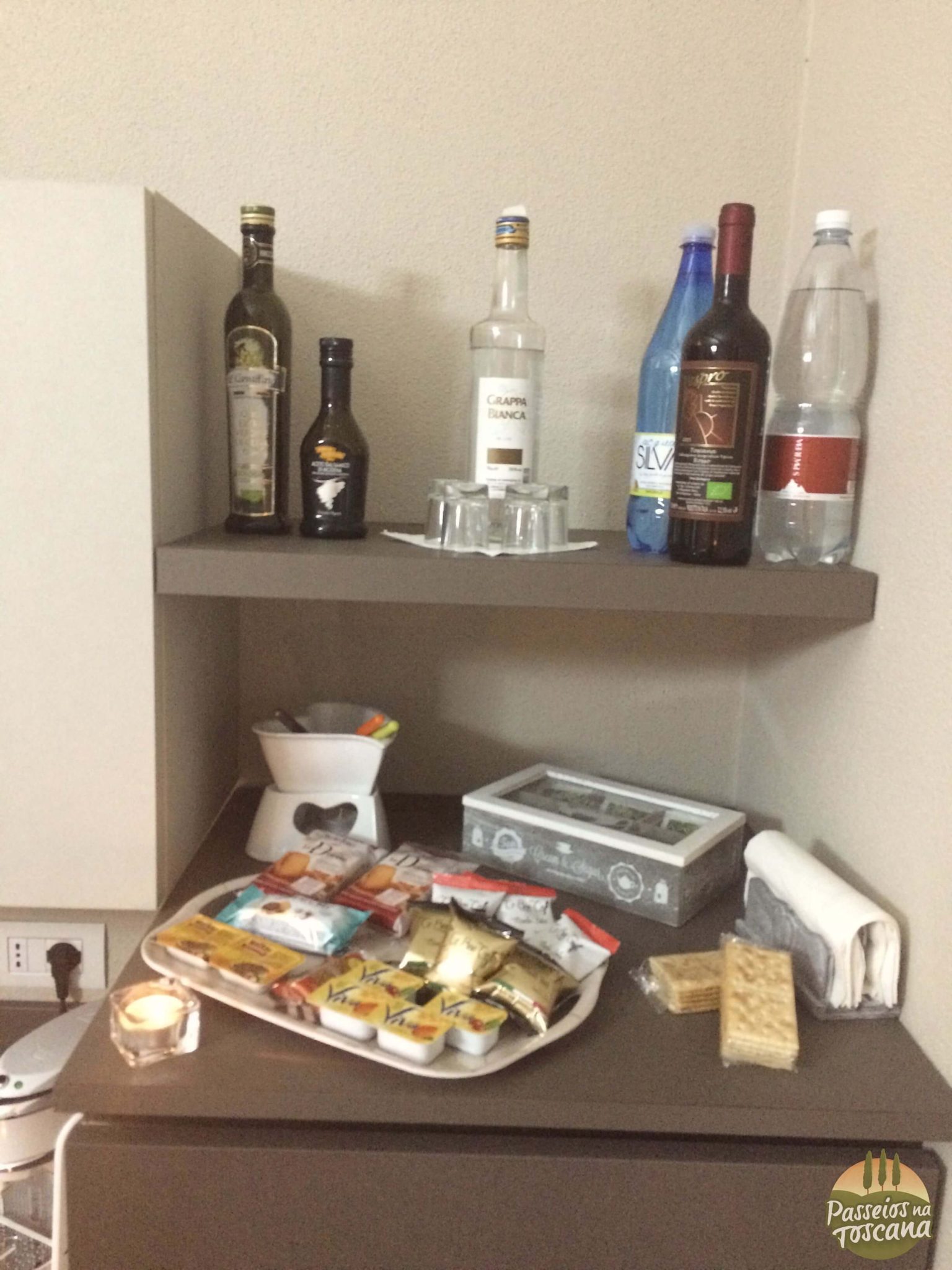 Ao entrarmos no quarto, havia à nossa espera uma bela garrafa de prosecco e algumas comidinhas, um mimo de boas vindas.