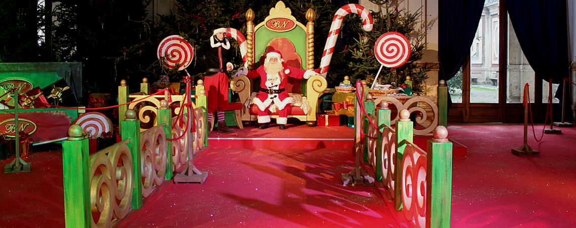 - Trono di Babbo Natale – finalmente o Papai Noel !! Os Elfos irão guiar as crianças até a sala do Trono … enorme … mágica … As crianças podem conhecer o Papai Noel, contar-lhe seus desejos, entregar a sua carta e tudo o que seu coração lhe dirá!