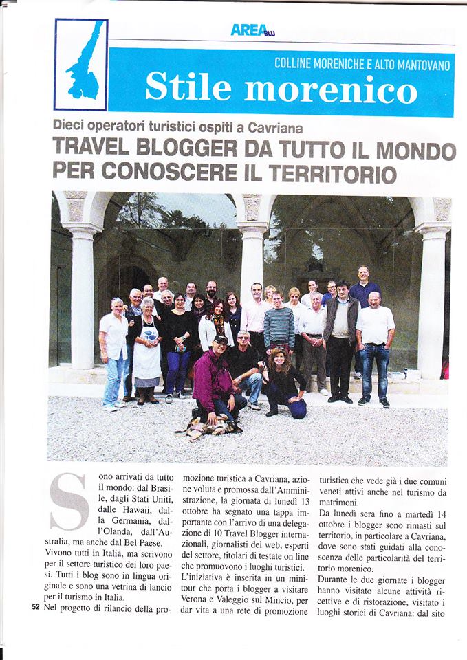 – No Jornal AREA BLU: Travel Blogger da Tutto il mondo per conoscere il territorio – sobre a visita de alguns bloggers (entre os quais a autora deste blog) na cidade de Cavriana durante o Blog Tour #VeronaGarda