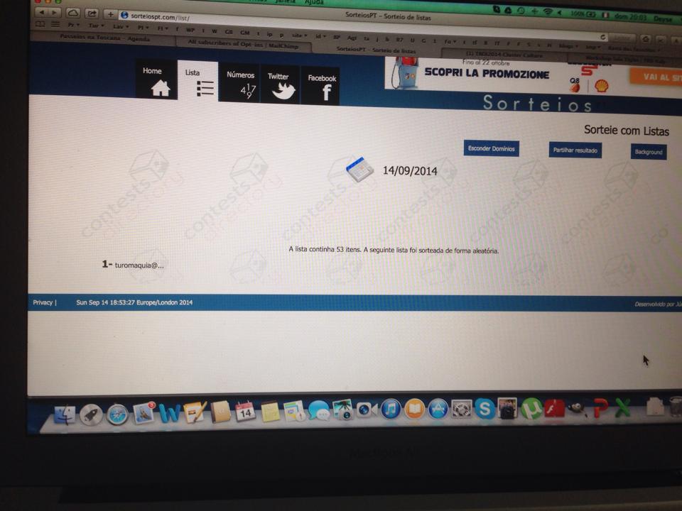 Data do Sorteio: 14 de setembro de 2014, as 18hs, hora italiana
