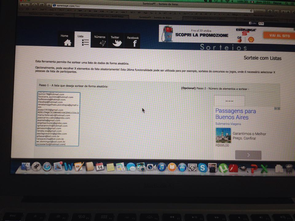 - a ganhadora foi Patricia Camargo, email [email protected]