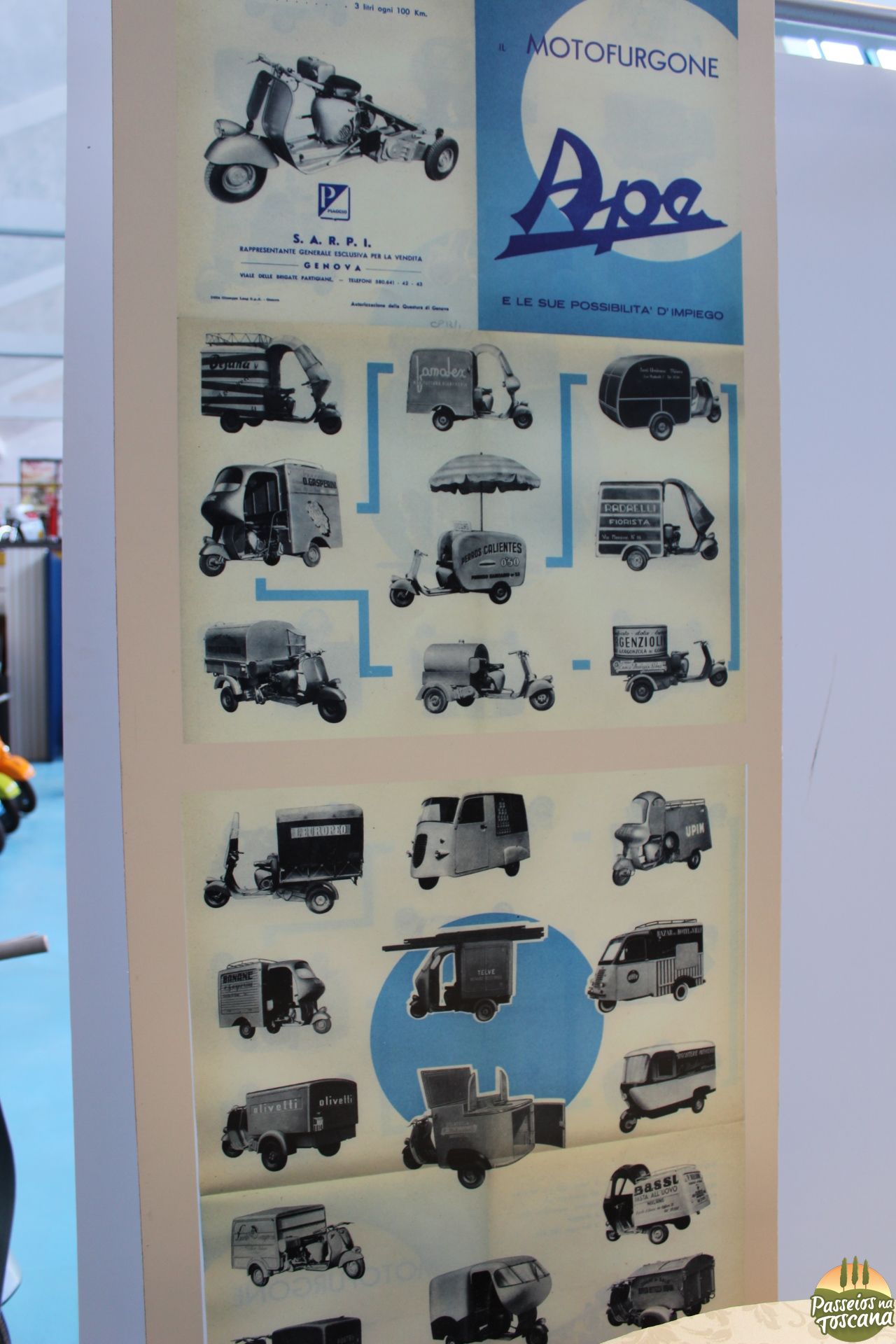 O Museu Piaggio possui uma exposição permanente nas coleções motos, carros e outros equipamentos criados pela Piaggio, como a Ape, aVespa e a Gilera. Original, fascinante, por vezes, curioso, que fizeram a história do transporte italiano e internacional: a Vespa.