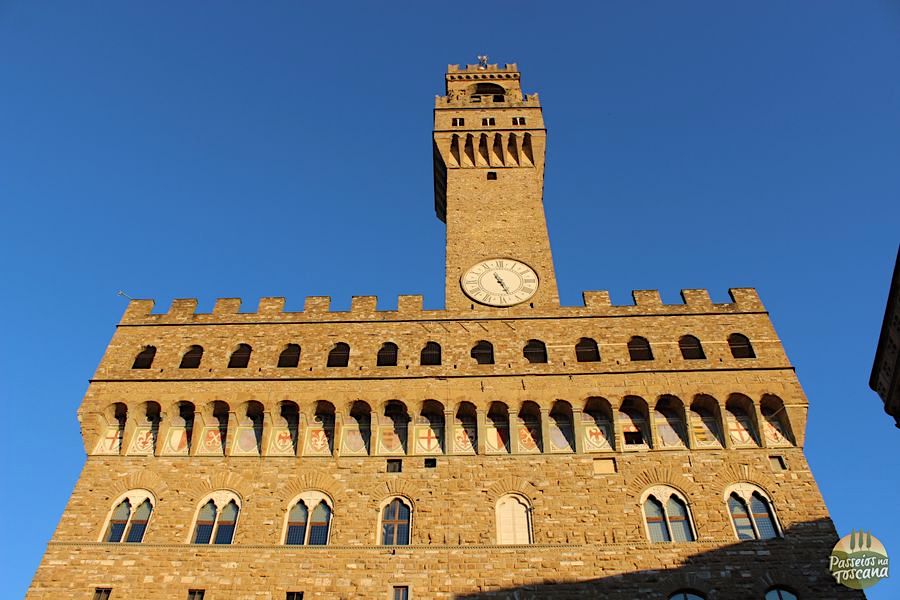 O Palazzo Vecchio foi construído em estilo gótico medieval, uma mistura entre fortaleza e palácio. O que mais chama a atenção é a impressionante Torre de Arnolfo, com seus 94 metros de altura, a mais alta da cidade. Outro elemento importante da fachada são os brasões, os quais representam símbolos da República Florentina e seus aliados.