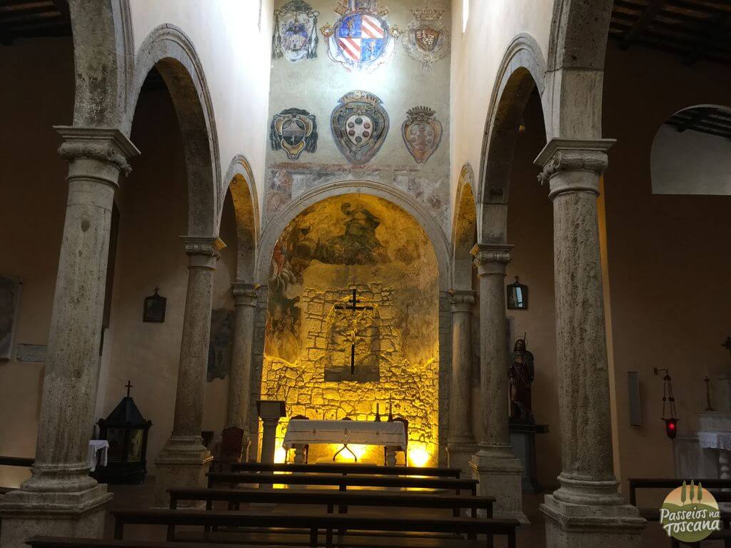 Continuando da Catedral ao longo da via G. Orsini fica a bela (9) Igreja de Santa Maria (hoje chamada San Rocco), é a mais antiga de Pitigliano (século XII), com uma fachada do século XVI, dentro há três corredores com afrescos.