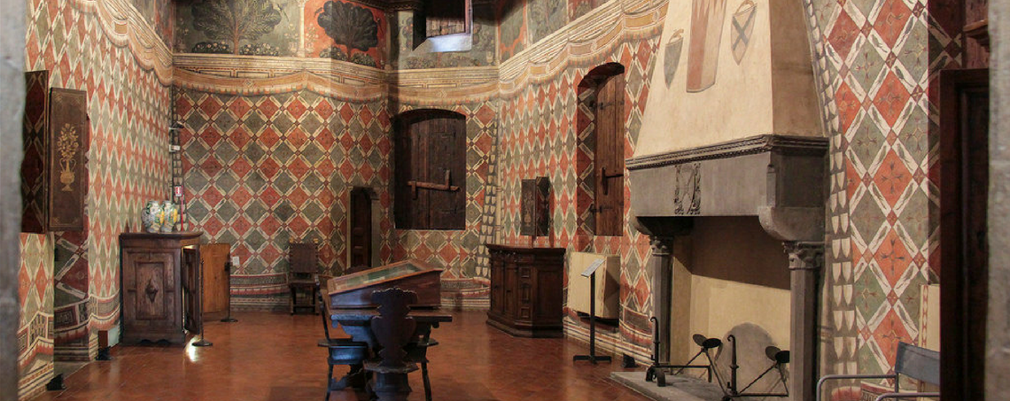 Nas paredes dos corredores e das grandes salas que não foram afrescadas encontramos desenhos, escritas, marcações feitas desde o fim do século XIV e mantidas graças aos tapetes que os tampavam.