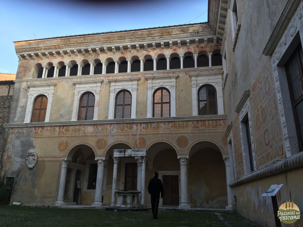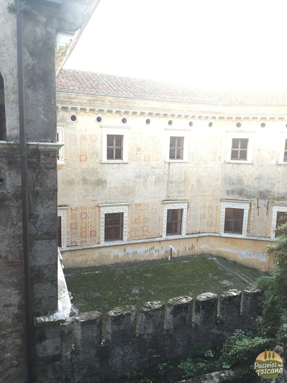 Uma curiosidade: dentro do cortile, dentro de uma moldura de marmore das janelas se encontram frases curiosas em latim, “Sequita el tempo” (espera o tempo), e “Va col tempo” (vai com o tempo), conselhos úteis naquela época, como hoje.