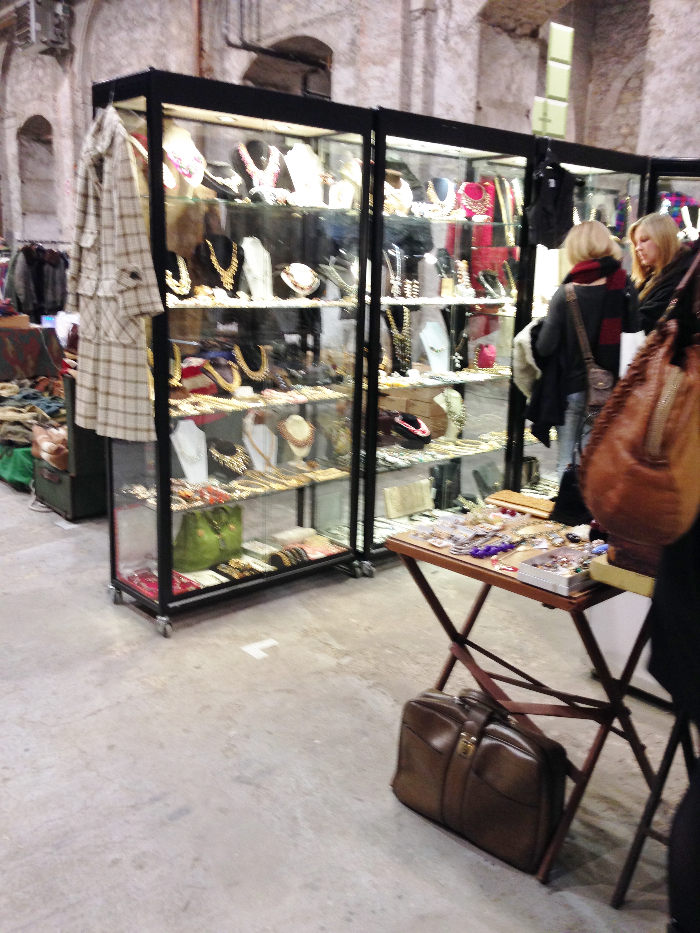 Eram 60 stands com tudo que há de mais Vintage, roupas, bolsas, sapatos, óculos, chapéus, mas também móveis e objetos de design. Deu pra fazer umas comprinhas, achar uns casacos muito interessantes, um blazer Channel anos 90 por €80.